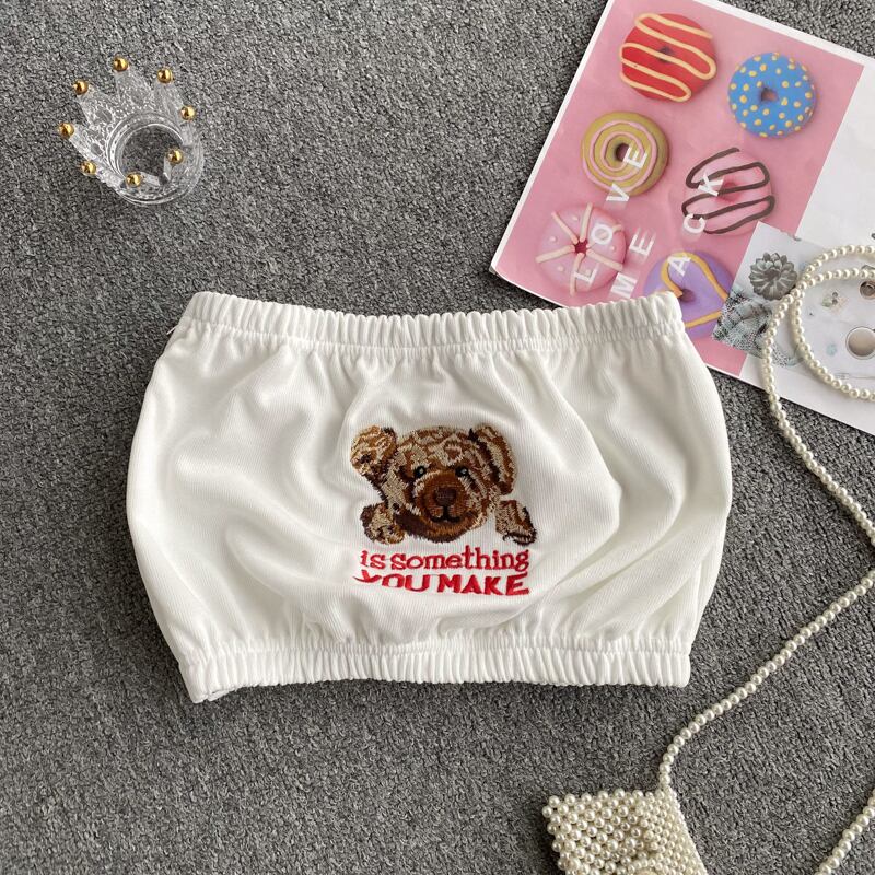 version of fashionable y bear embroidery tube top tops small outside wear off-the-shoulder beautiful back bottoming vest 刺繍 lyxaj28308163906