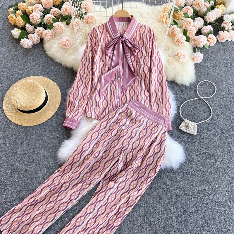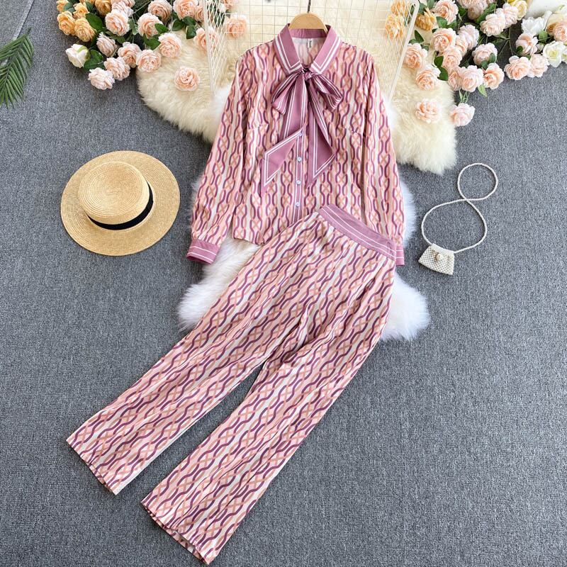 Professional suit ladies shirt design sense printing high-end ladies temperament all-match wide-leg pants fashionable two-piece trend lyxaj90459913862