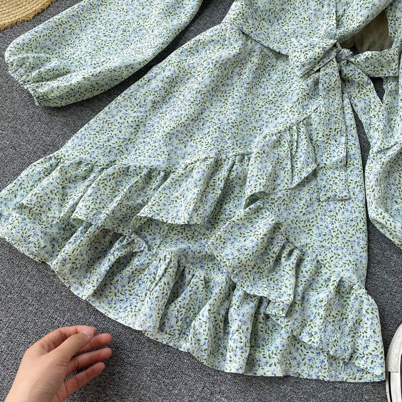 European and American ins holiday style floral dress autumn women's retro one piece wrap skirt irregular ruffle skirt レトロ オータム 秋物 花柄 スカート ヨーロピアン lyxaj1711154653