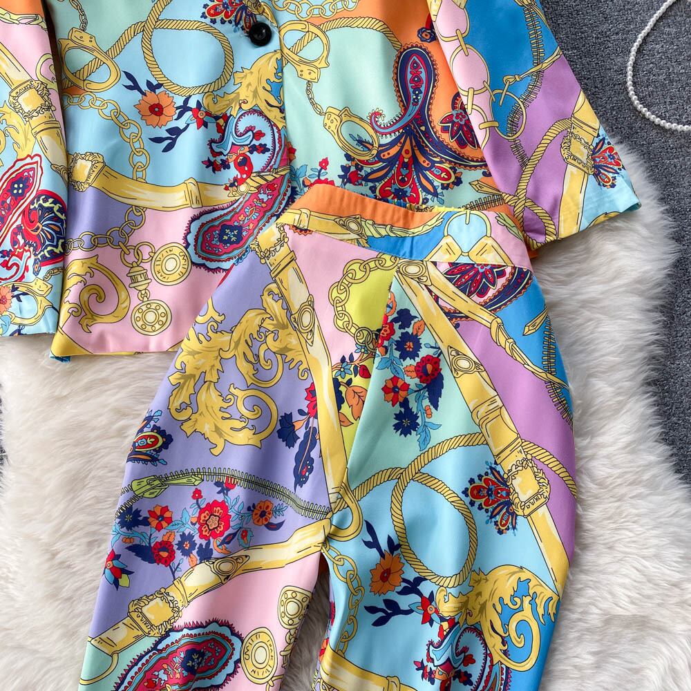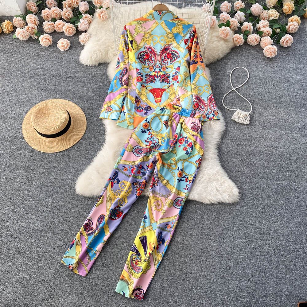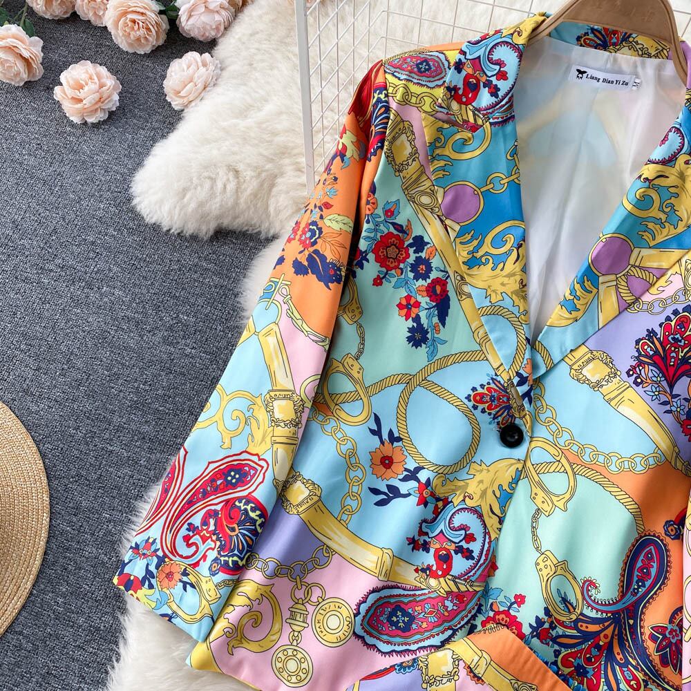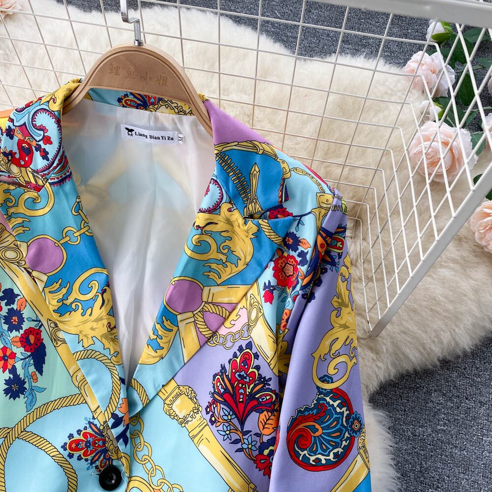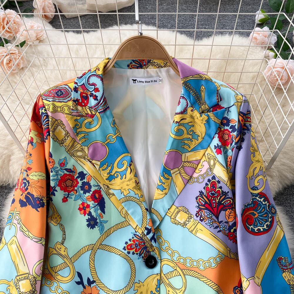 European and American new spring ladies temperament one button thin suit high waist straight printing professional printing suit tide ハイウェスト スプリング 春物 ヨーロピアン lyxaj42305620301