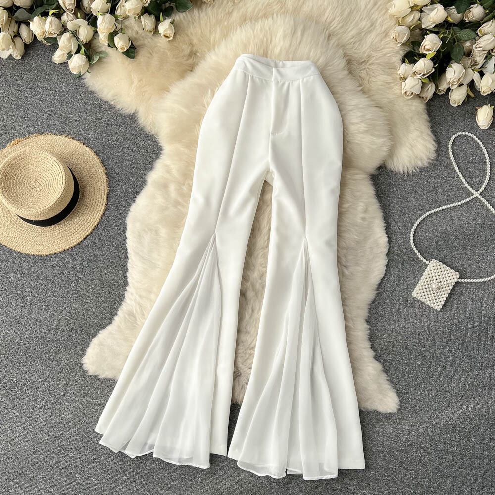 Mesh irregular stitching flared pants women's design sense niche high waist slim slim straight casual wide leg pants ハイウェスト レッド カジュアル メッシュ スリム ワイドレッグ ワイドパンツ ステッチ lyxaj46872164387