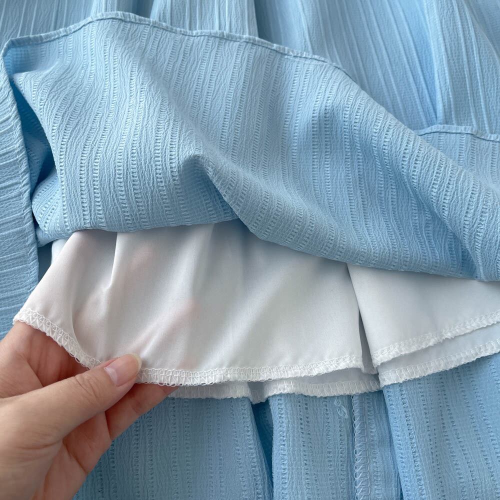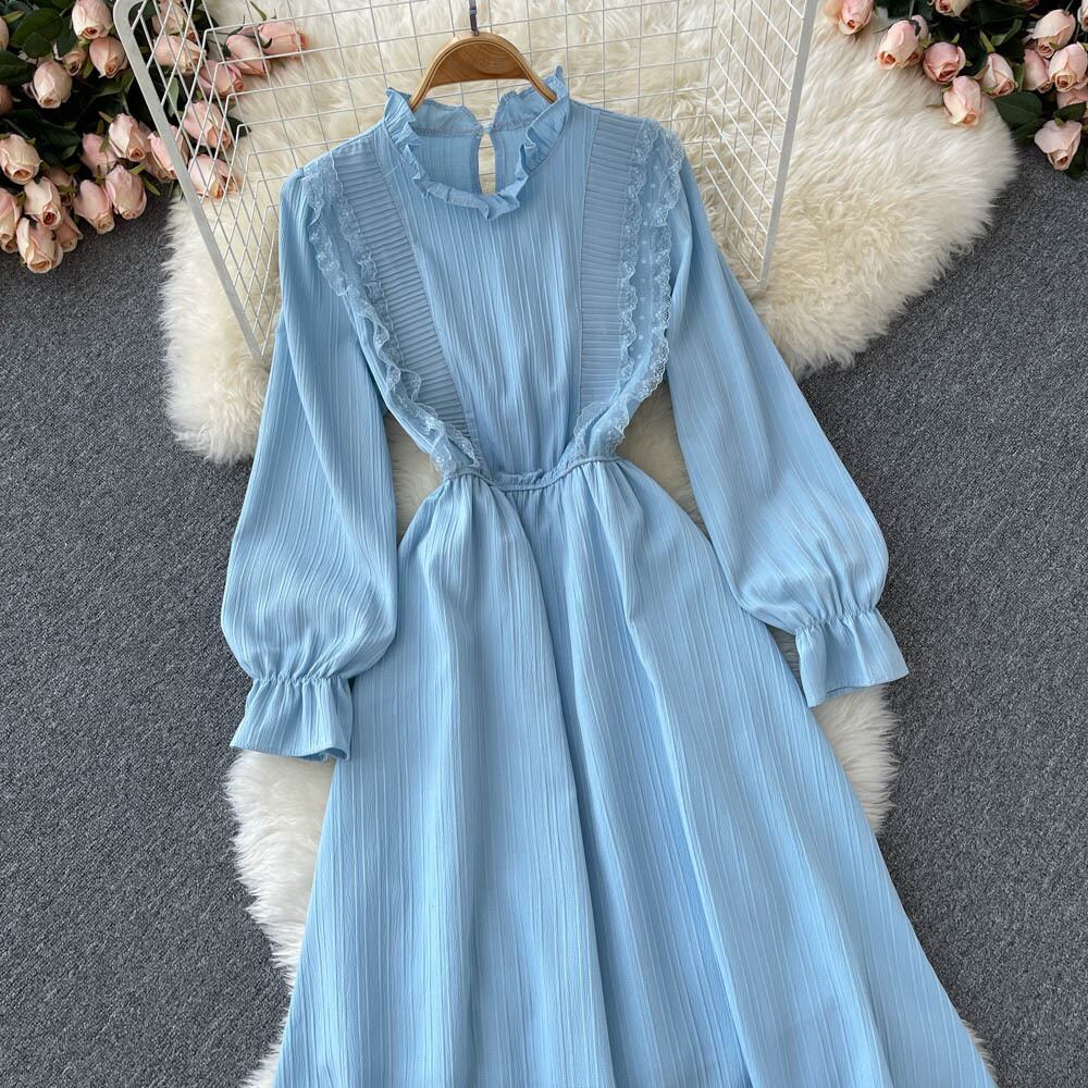 Celebrity temperament lotus leaf edge stand-up collar long-sleeved chiffon dress women's early spring new waist and thin super fairy A-line skirt ロング シフォン スプリング 春物 スカート Aライン lyxaj62187108202