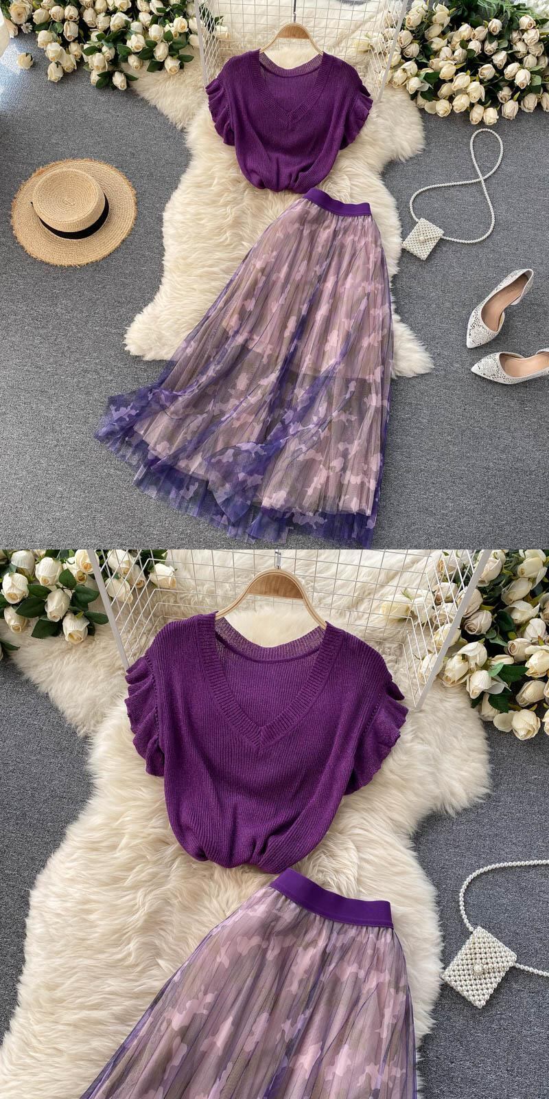 Celebrity temperament suit 2021 new feminine temperament V-neck knitted top all-match mid-length mesh skirt メッシュ スカート Vネック lyxaj20983375497