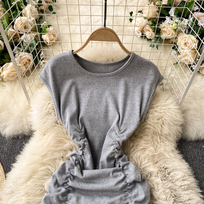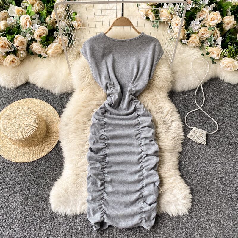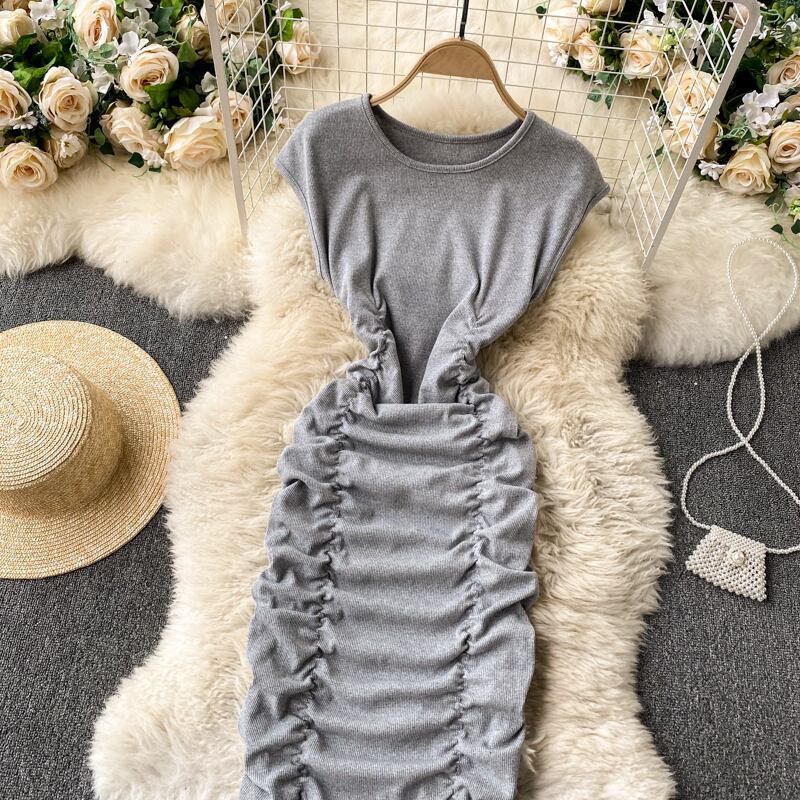 South 's Dongdaemun 2021 spring new dress round neck sleeveless slim fit slim pleated tight hip skirt プリーツ スプリング 春物 ノースリーブ スカート Oネック スリム lyxaj99511462774