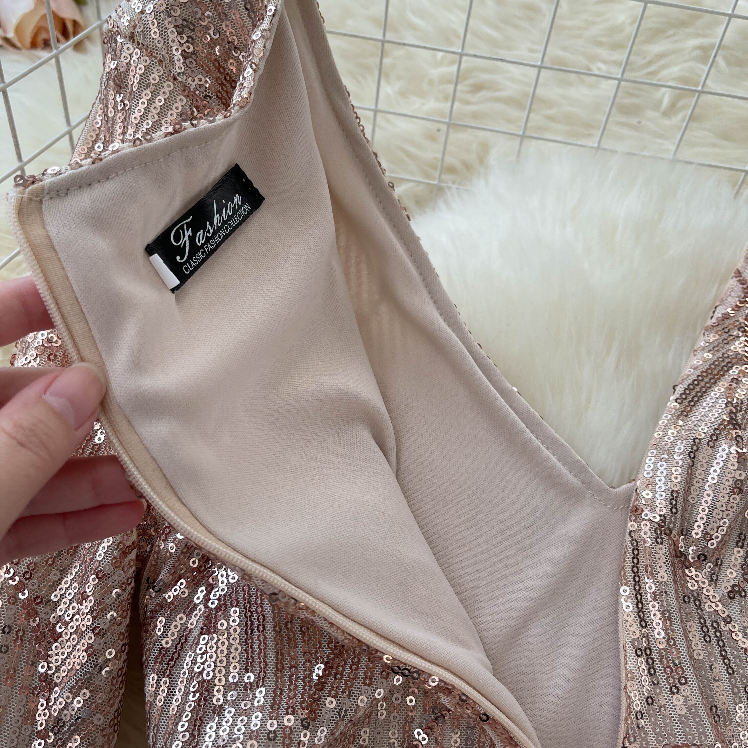 Sexy V-neck sequin dress female high-end light luxury banquet dress skirt temperament waist bag hip short skirt small ショート スカート Vネック lyxaj98773651900