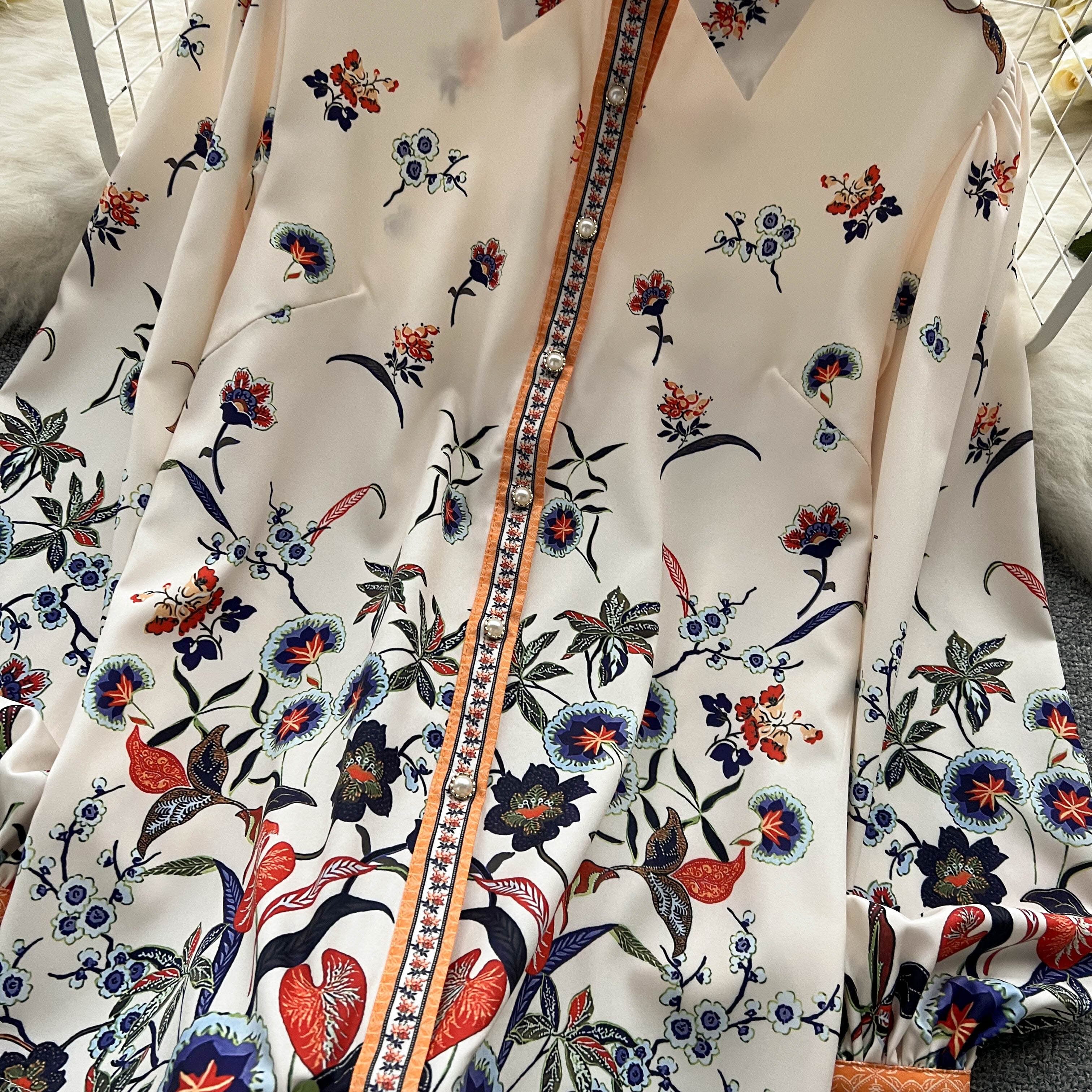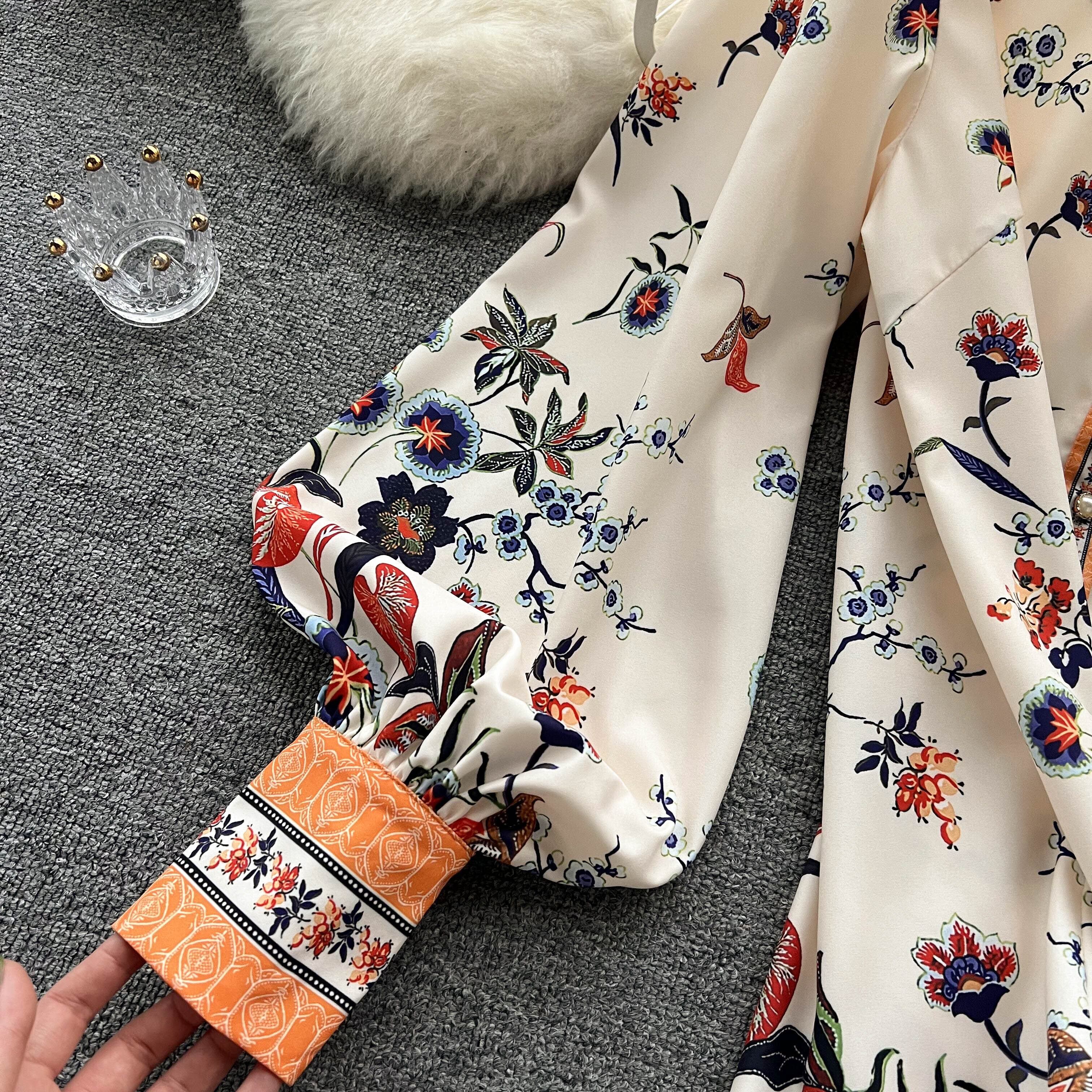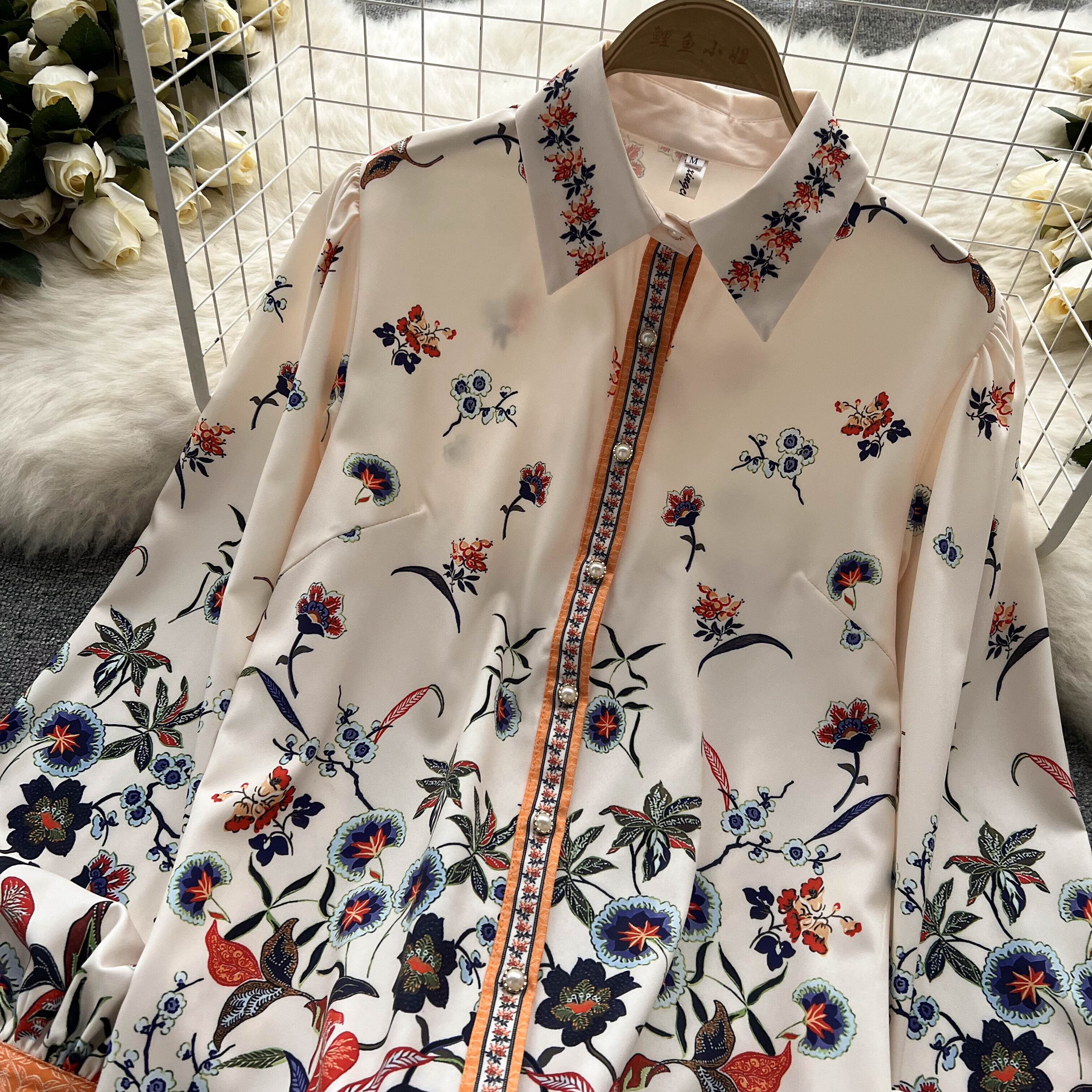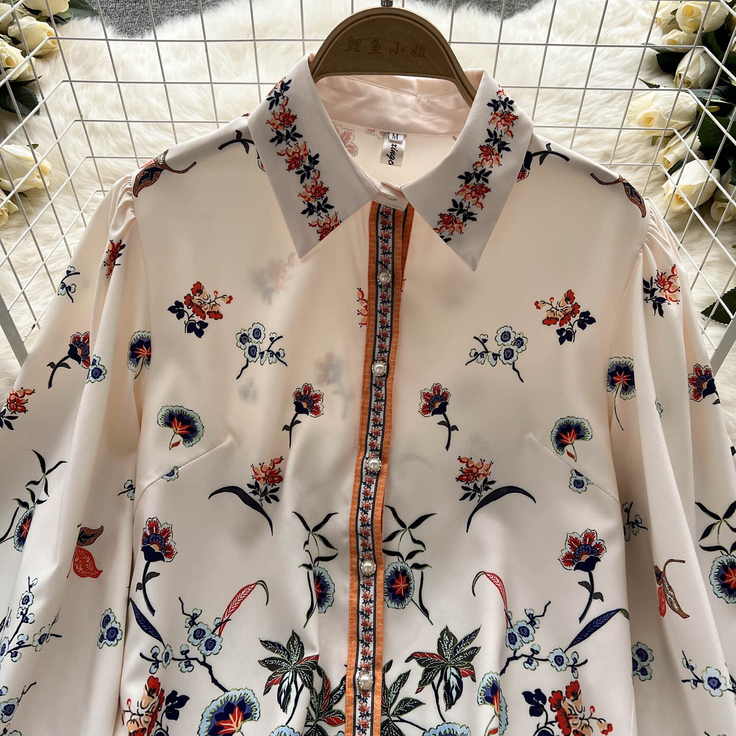 version of the niche loose design sense ethnic style printing design sense long-sleeved sunscreen shirt women's puff sleeve top women ロング lyxaj12667542634