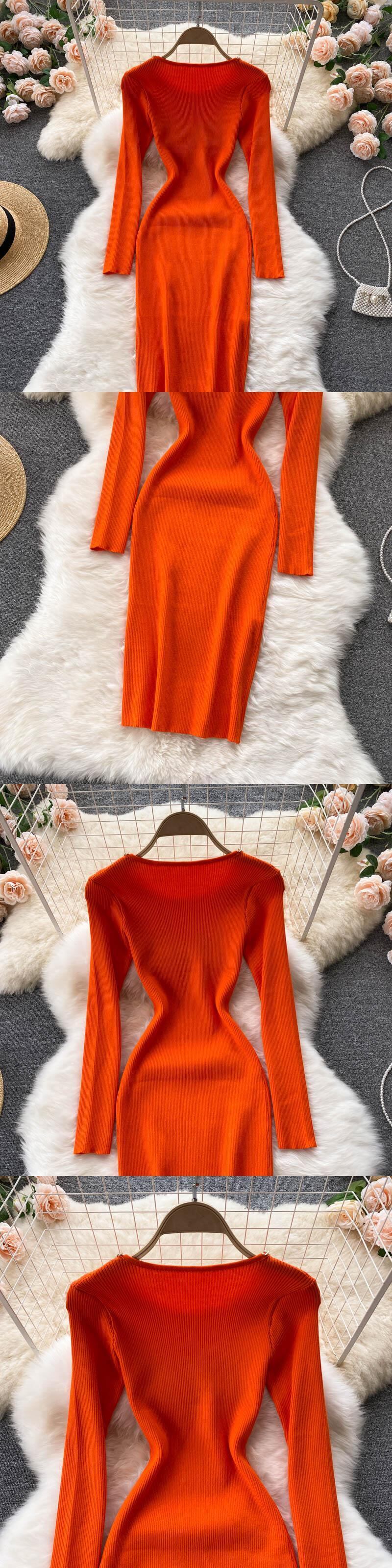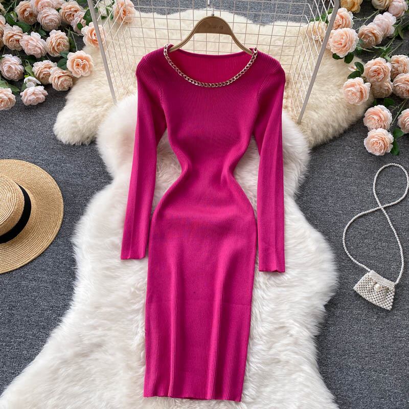 2021 autumn new version of the round neck chain long-sleeved slim slimming hip dress women's knitted bottoming skirt ロング オータム 秋物 スカート Oネック スリム チェーン lyxaj85618886115