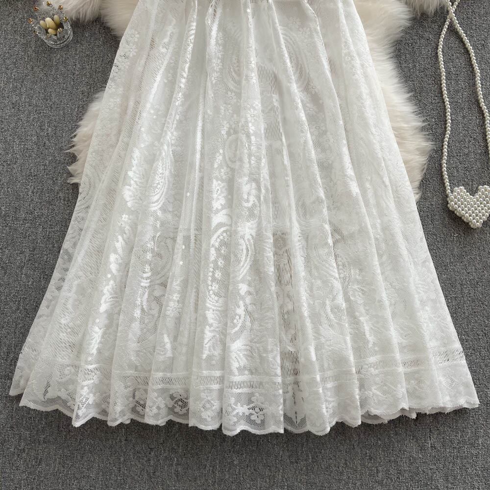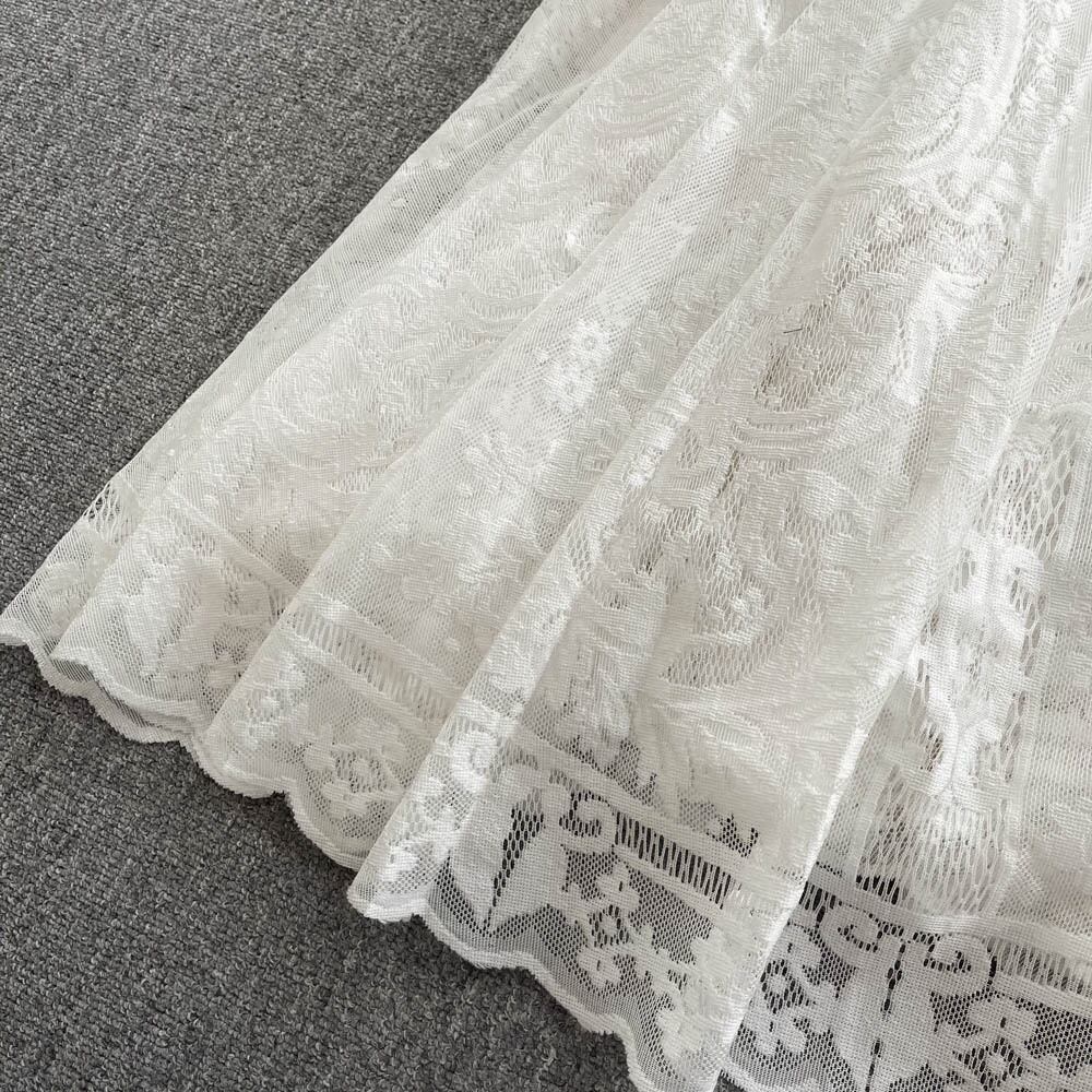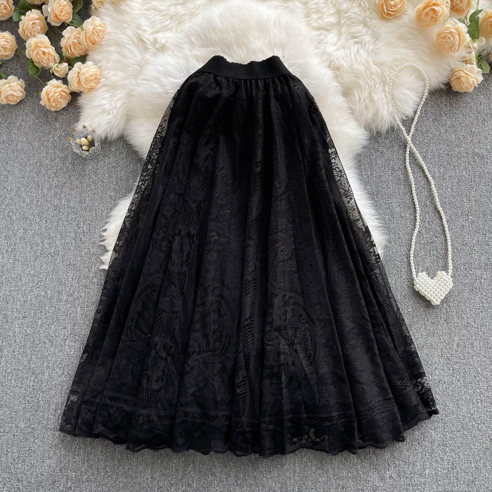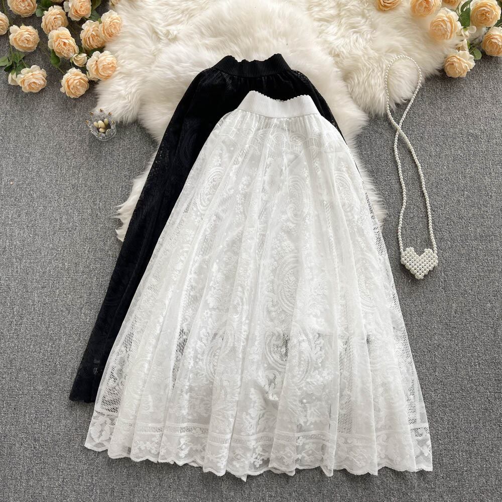 Lace mesh skirt skirt women's autumn and winter 2021 new high waist and thin A-line large swing umbrella skirt mid-length skirt ハイウェスト レース オータム 秋物 ウィンター 冬物 メッシュ スカート Aライン lyxaj39393897635