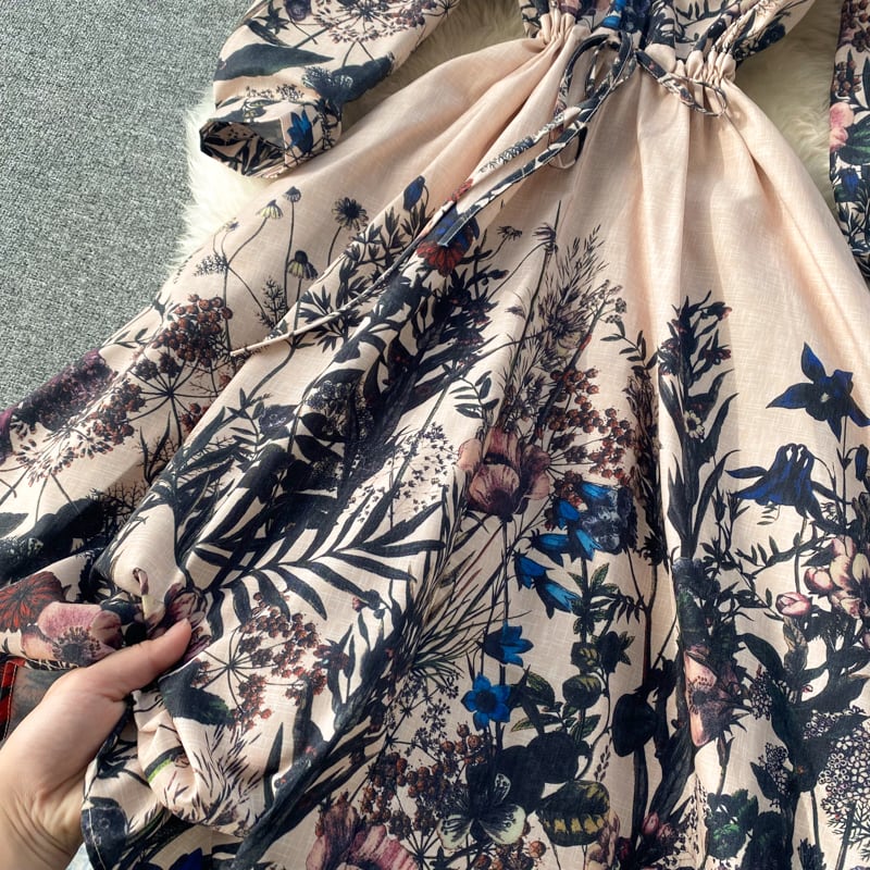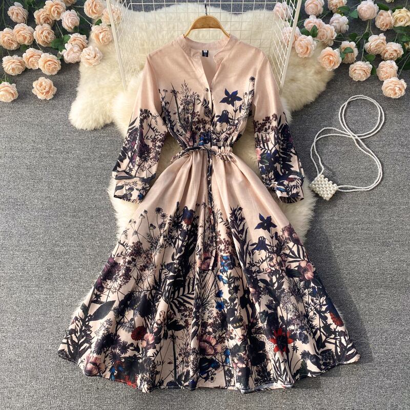 Shirt Dress 2022 Early Spring Long Sleeve French Dress Retro Waist Loose Print Large Swing Skirt ロング レトロ 長袖 スプリング 春物 スカート lyxaj61547680880