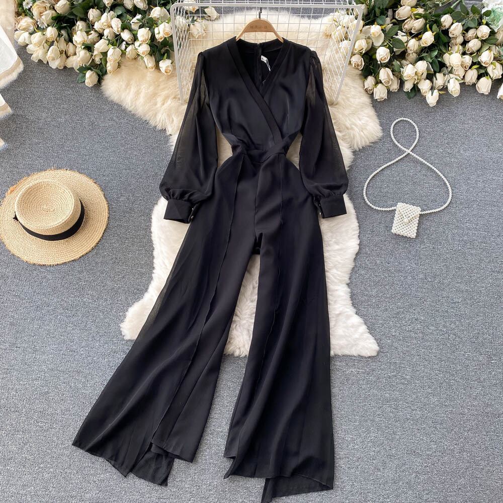 Royal sister light and mature style women's temperament V-neck chic high-end sense jumpsuit high waist slim mesh stitching jumpsuit ハイウェスト メッシュ Vネック スリム ステッチ lyxaj44944821460