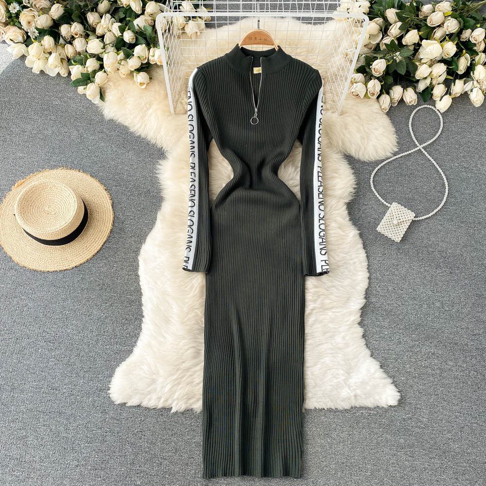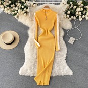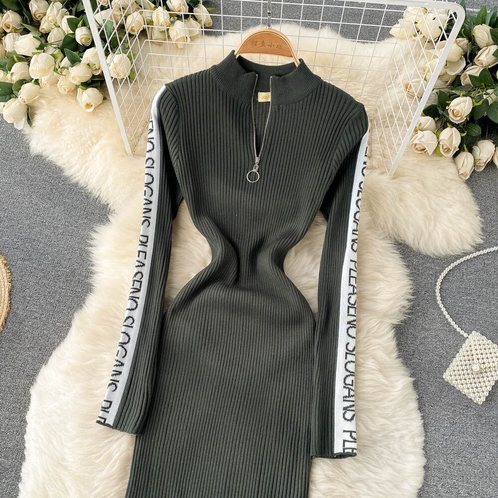 version of the simple stand-up collar zipper long-sleeved knitted dress 2021 autumn and winter new slim fit and thin bottoming sweater dress ロング オータム 秋物 ウィンター 冬物 スリム lyxaj52918662866
