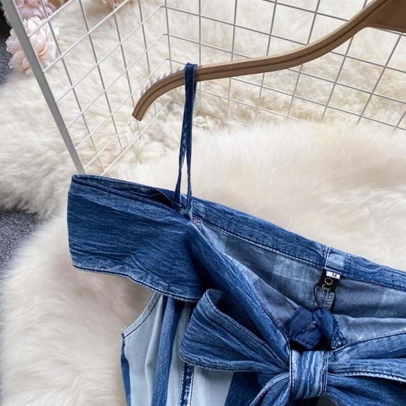 2022 new style fashion one-shoulder off-shoulder striped denim suspender dress ストライプ オフショルダー lyxaj41288951622
