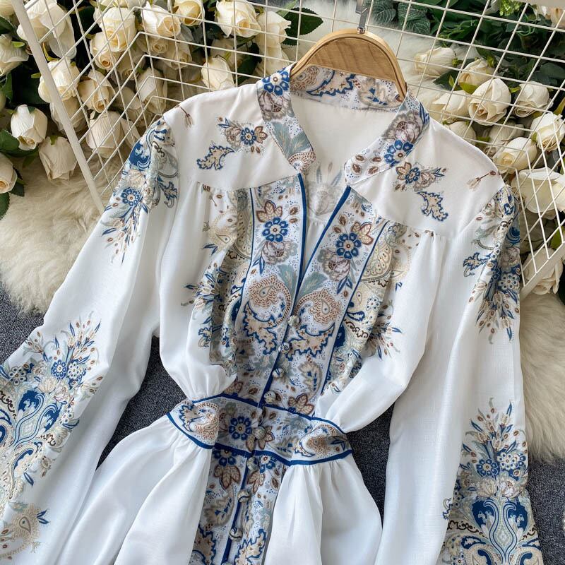 Celebrity small dress goddess fan temperament V-neck slim short retro print lantern sleeve palace style dress female ショート ランタンスリーブ レトロ レース Vネック スリム lyxaj68432960885