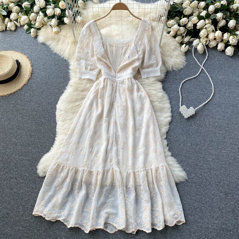 Gentle dress 2021 new summer dress goddess fan temperament square collar slim mid-length ruffled first love skirt サマー 夏物 スカート スリム スクウェア lyxaj48708759307