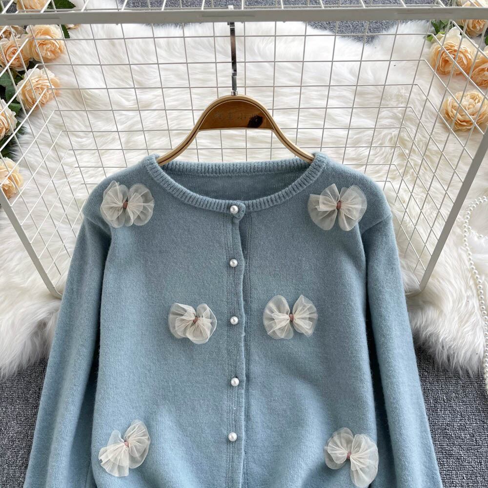 Knitted cardigan jacket autumn and winter 2021 new small bow knot age-reducing soft waxy sweater women's design sense is small リボン カーディガン オータム 秋物 ウィンター 冬物 lyxaj91045374094