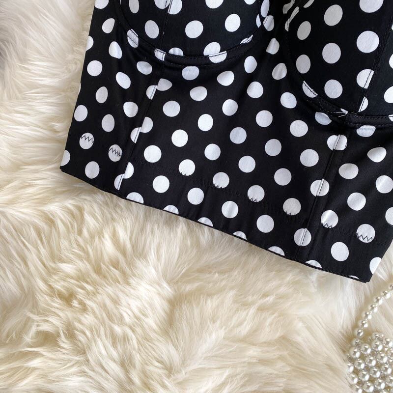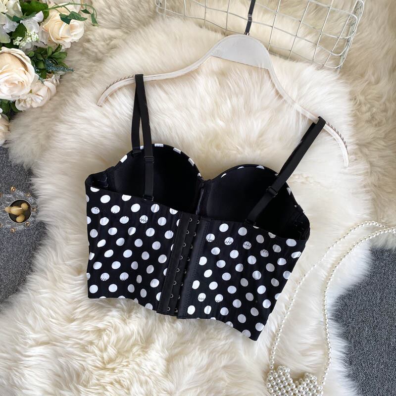 European station new polka dot camisole female v-neck sexy gathered chest pad short waistless all-match net red top ショート レッド Vネック ヨーロピアン lyxaj59814715803