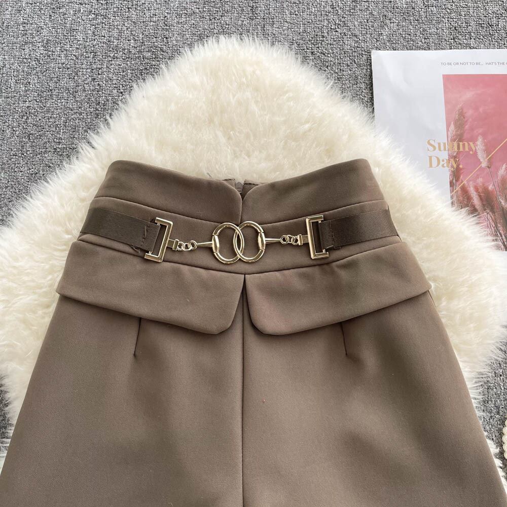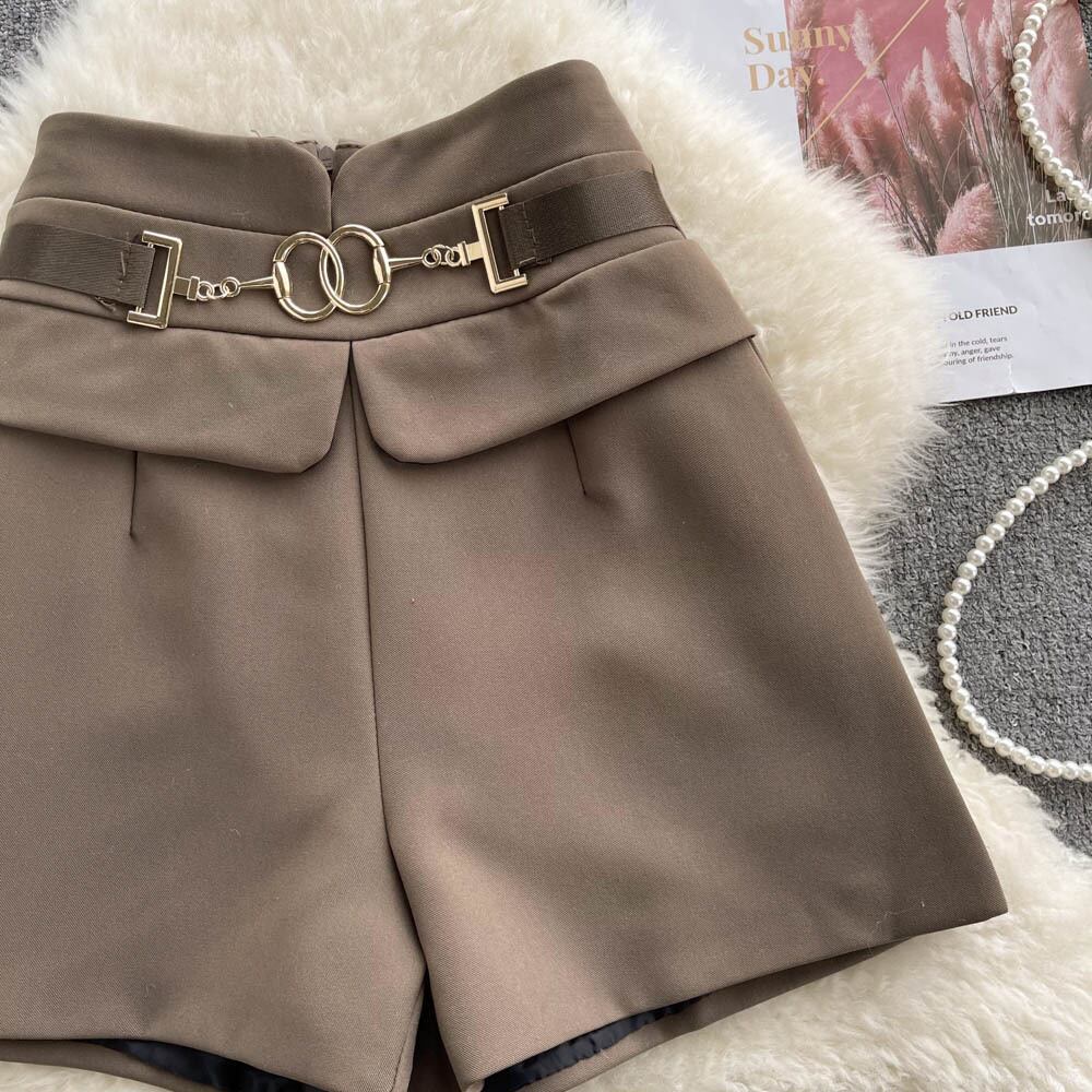 Spring Shorts Women's 2022 Waist Splicing Waist Belt Metal Chain Buckle Solid Color Versatile Trend スプリング 春物 ハーネス ベルト ショーツ ブルマー ソリッドカラー チェーン lyxaj85992008421