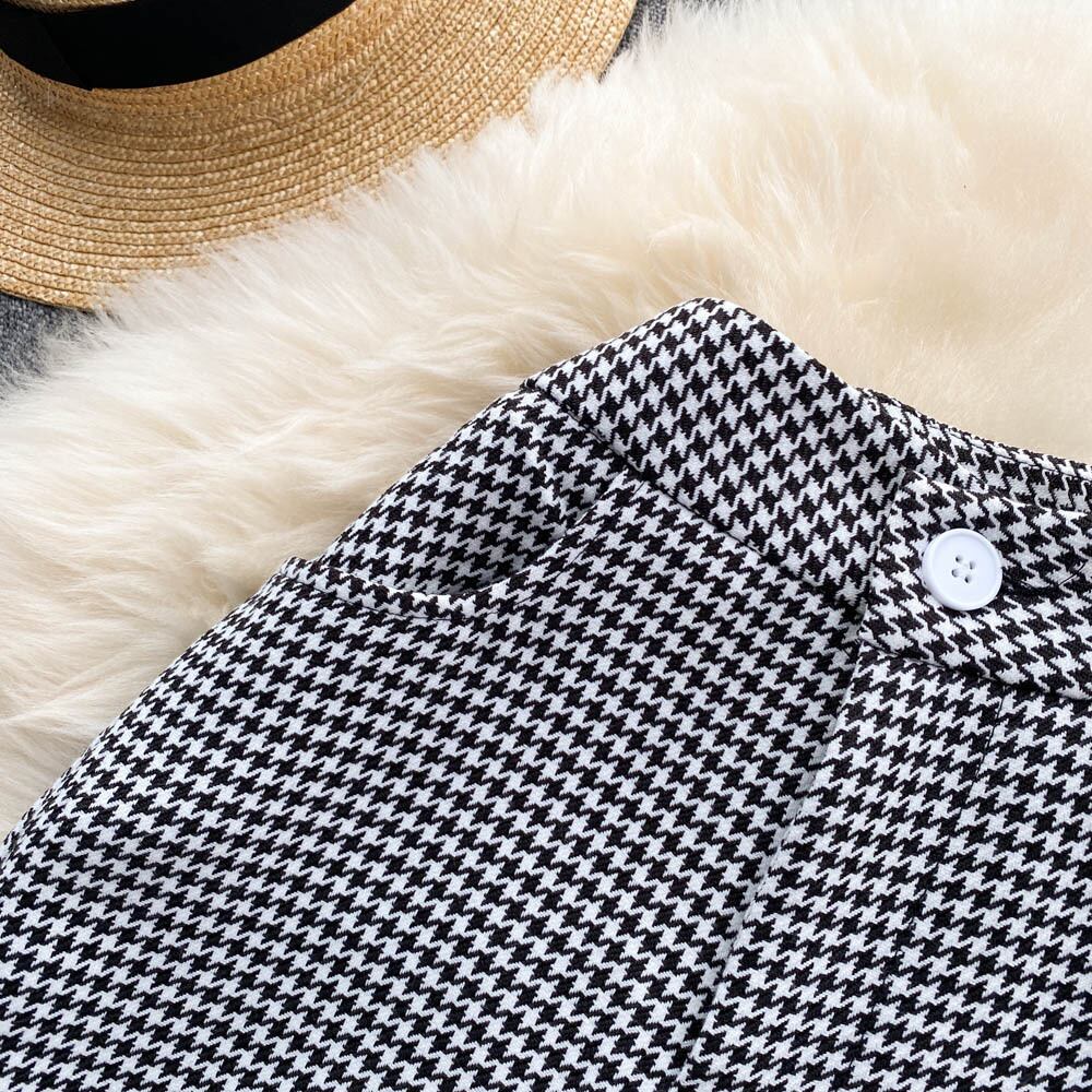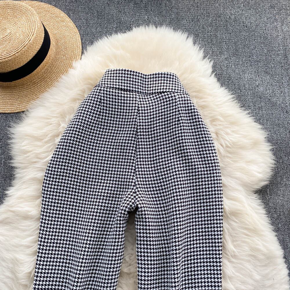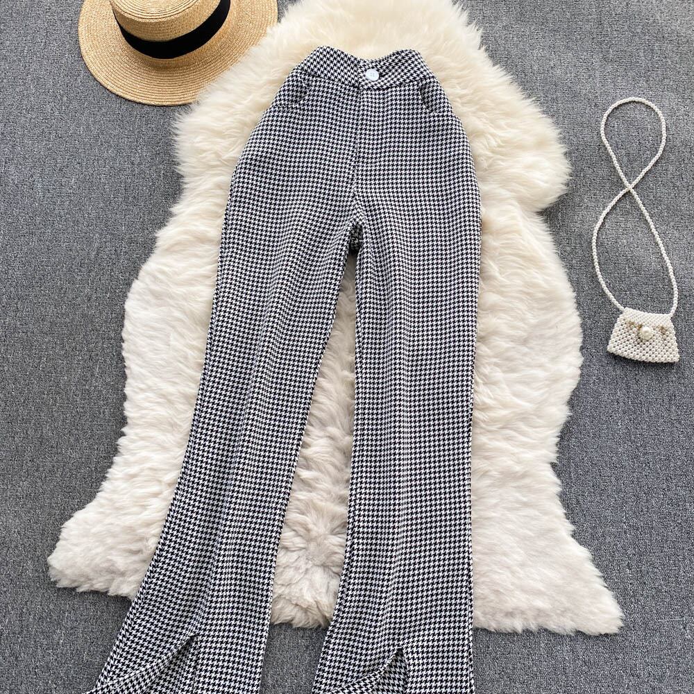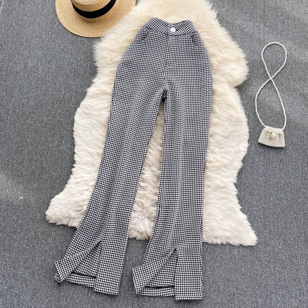 ins tide high-waisted thin houndstooth plaid pants women's version of fashion all-match micro-pants split straight wide-leg trousers lyxaj32207660007