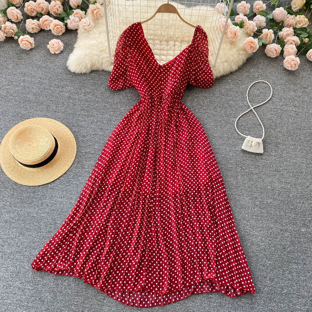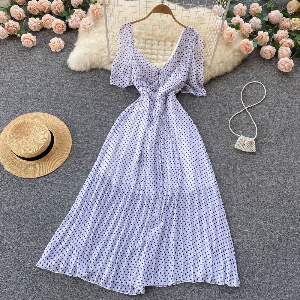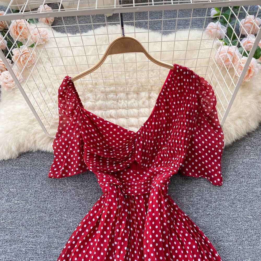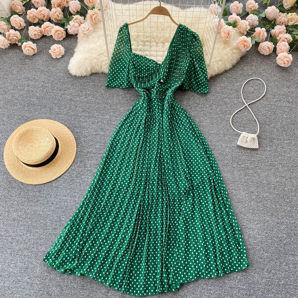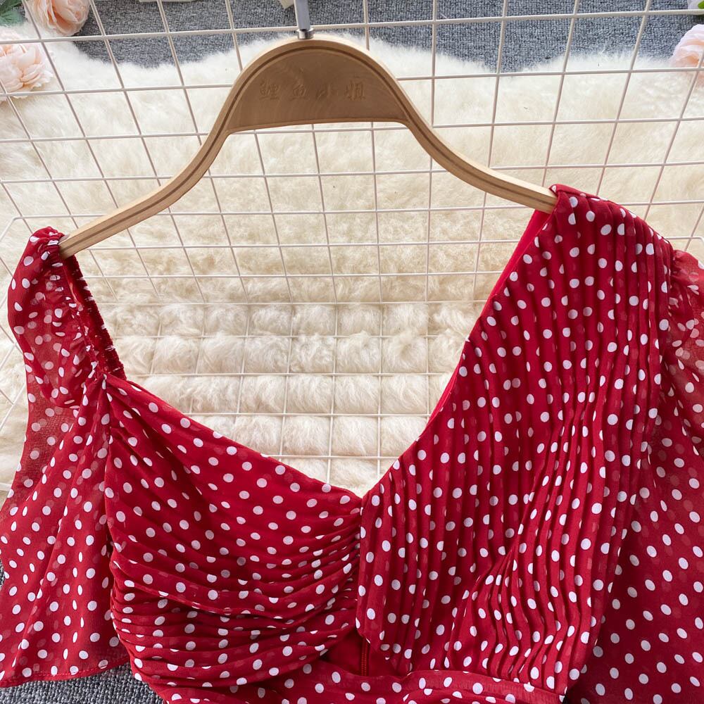 2022 new three-dimensional hairy polka dots tube top puff sleeves waist pleated long skirt dress fashion trend ロング プリーツ スカート lyxaj29203839121