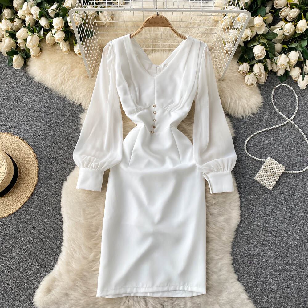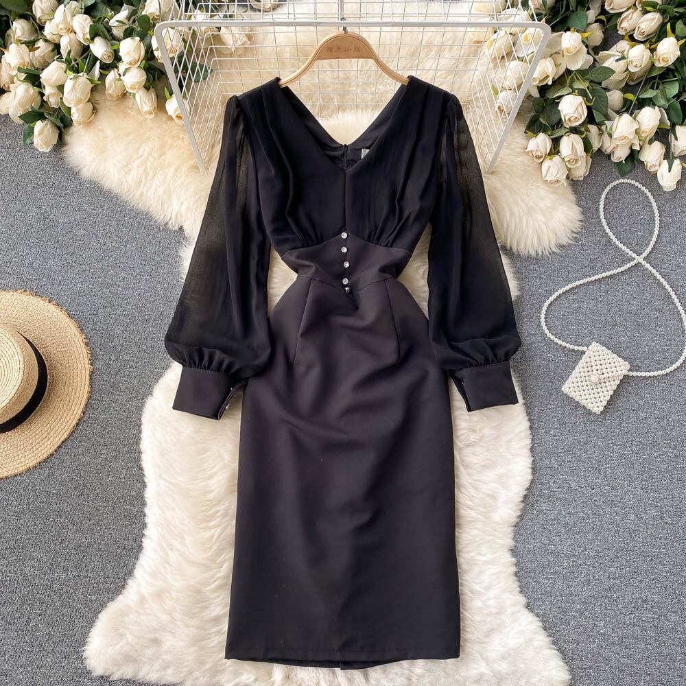 -end temperament V-neck dress Royal sister's light and familiar style Vネック lyxaj34517069947