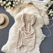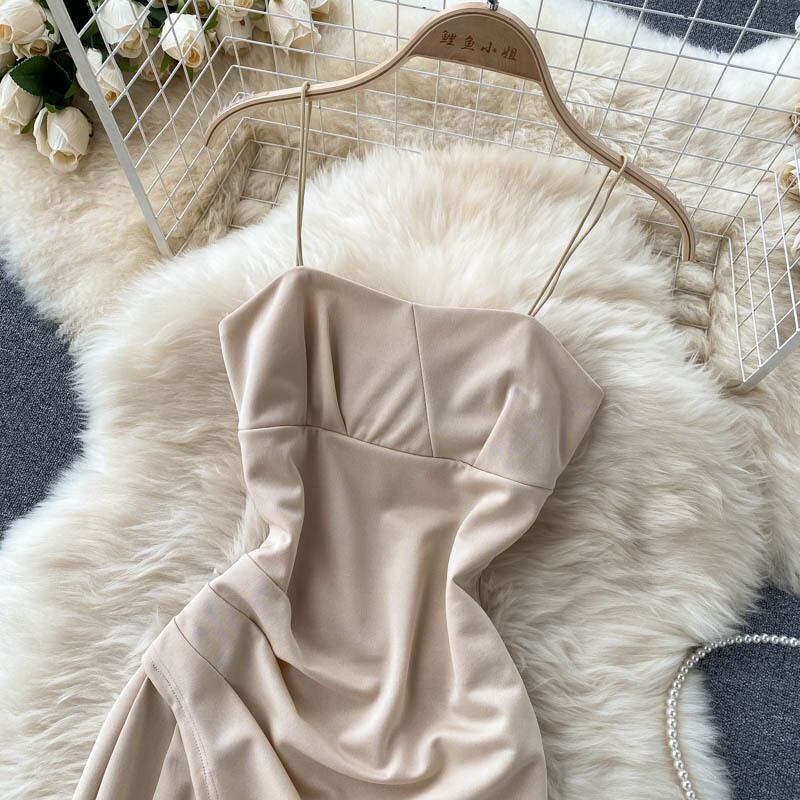 Net red fried street summer dress goddess Fan Xinji pleated slim short section sexy split bag hip skirt suspender dress female ショート レッド ストリート プリーツ サマー 夏物 スカート スリム lyxaj17130743373