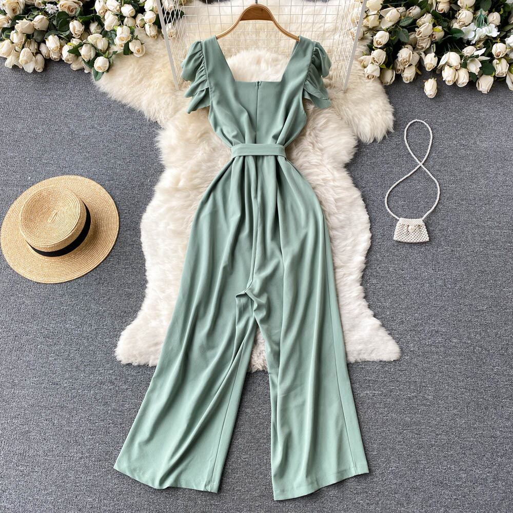 women's summer new holiday style fashion jumpsuit sexy V-neck slim long casual wide-leg pants ロング カジュアル サマー 夏物 Vネック スリム lyxaj15868134105