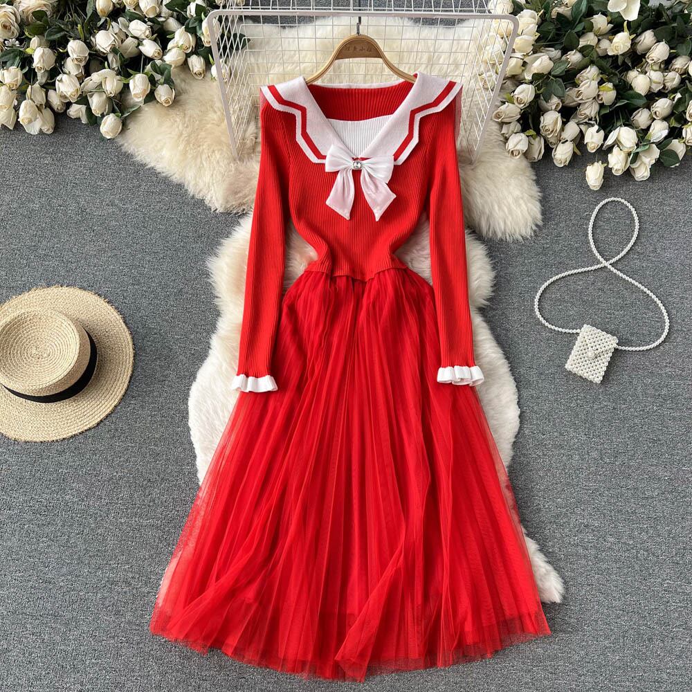 Knitted mesh stitching dress 2022 spring new small fresh goddess Fan Xian thin bottoming outside wear skirt trendy スプリング 春物 メッシュ スカート ステッチ lyxaj64866773246