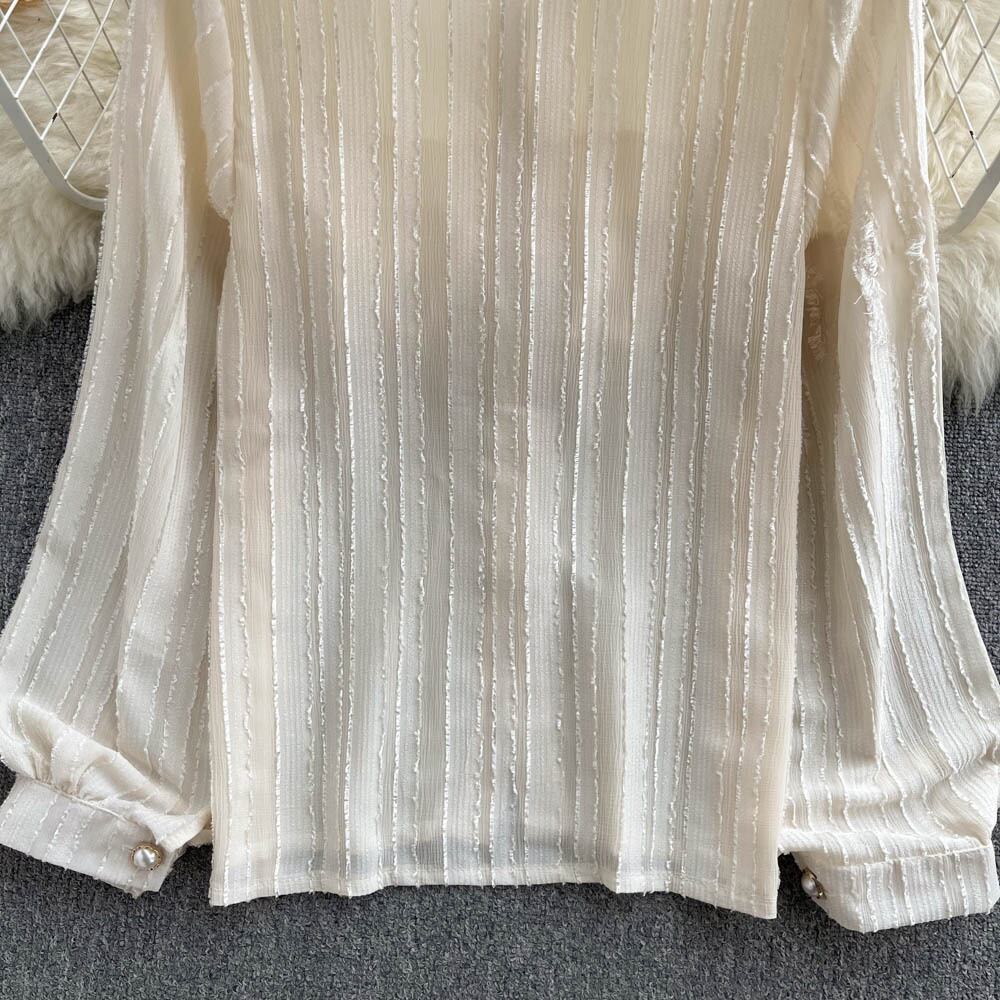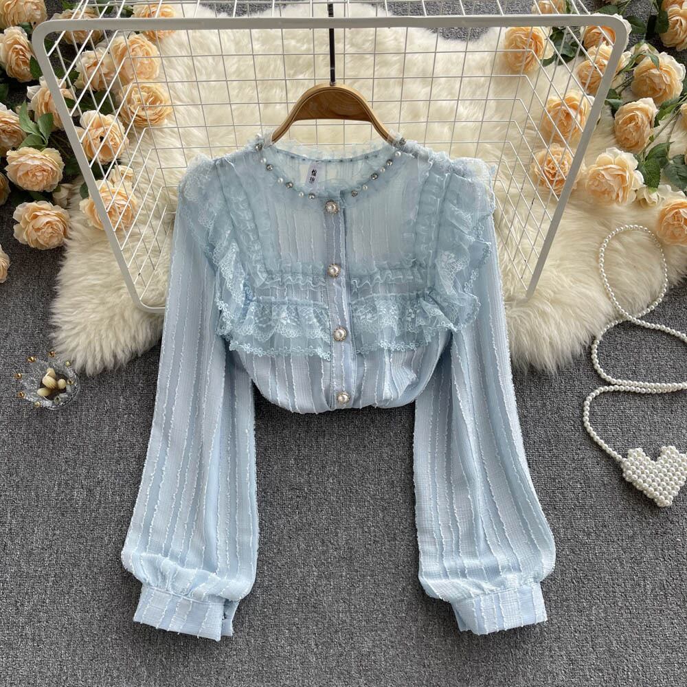 Chiffon shirt women's design sense niche lace ruffled slim fit all-match age-reducing long-sleeved shirt spring top women ロング シフォン レース スプリング 春物 スリム lyxaj61384126300