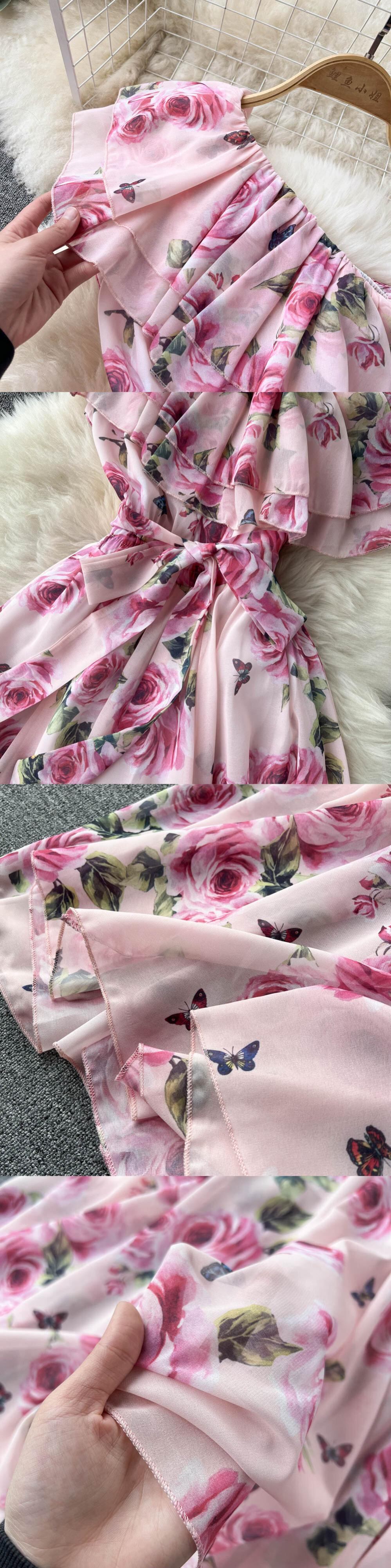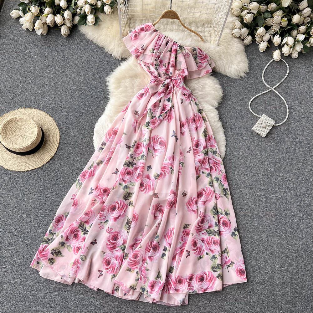 2022 spring and summer new bohemian seaside holiday style one-shoulder irregular ruffle dress print long skirt ロング スプリング 春物 サマー 夏物 スカート lyxaj9597162316