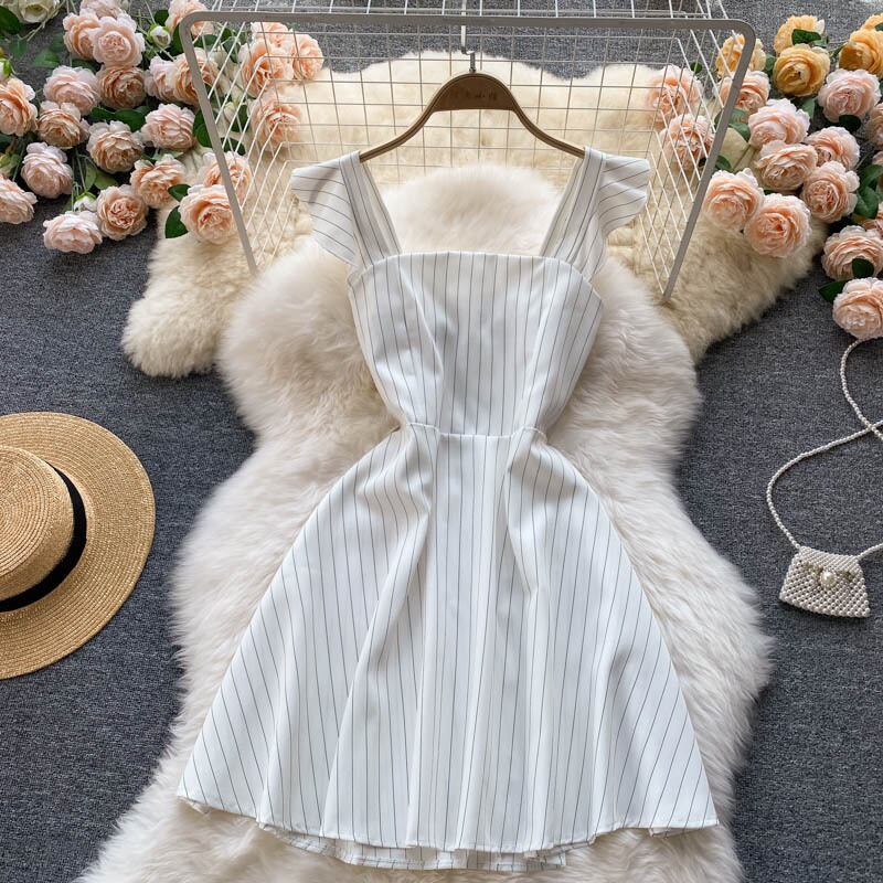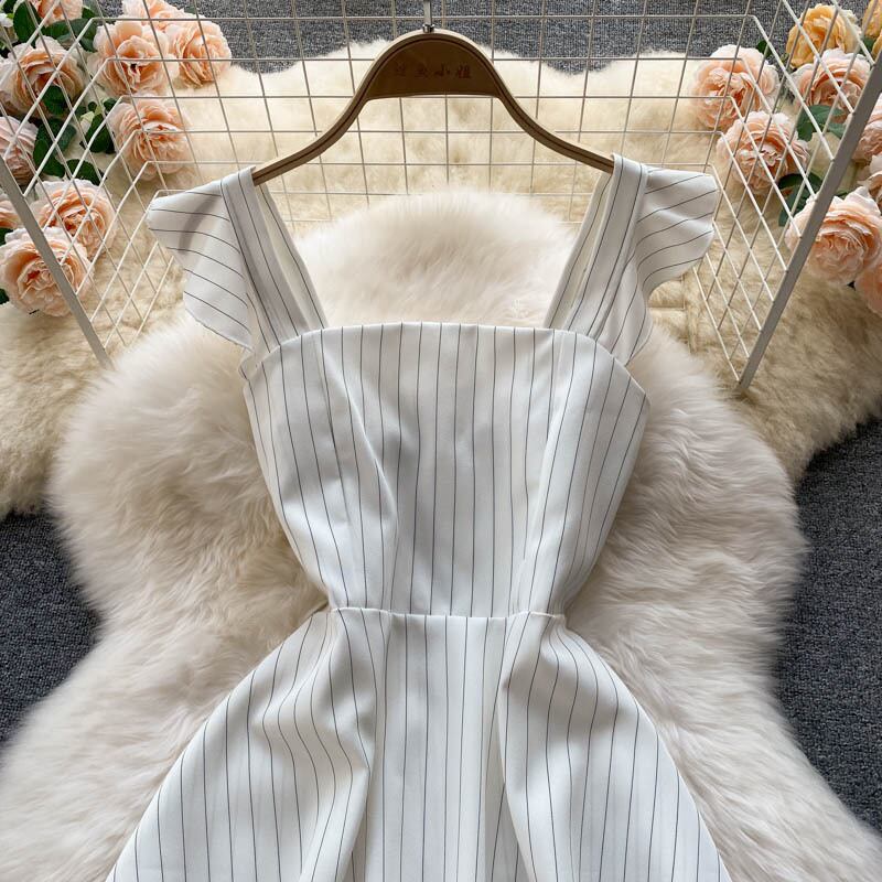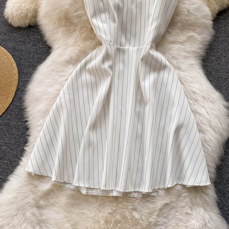 Small dress summer style retro striped slim short section sweet ruffled suspender skirt holiday skirt ショート レトロ 大人ガーリー スウィート キュート カジュアル サマー 夏物 スカート ストライプ スリム lyxaj18971714930
