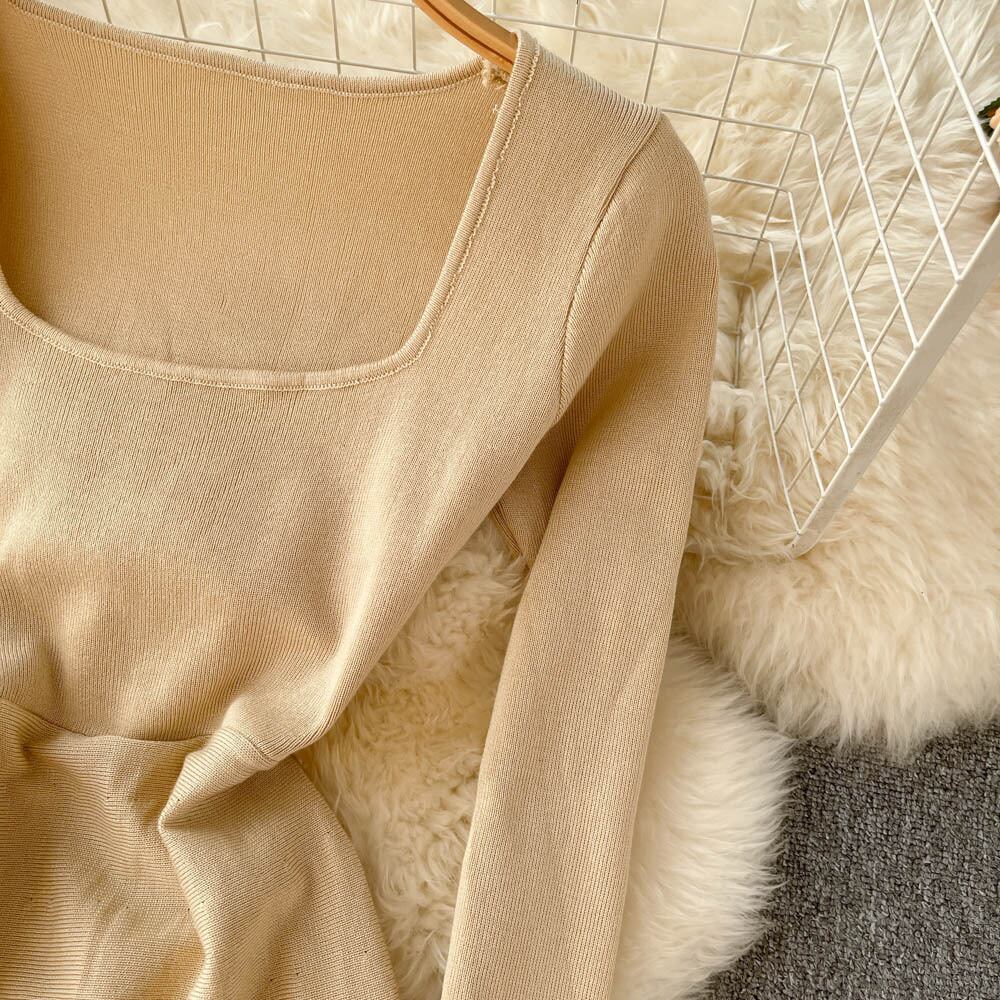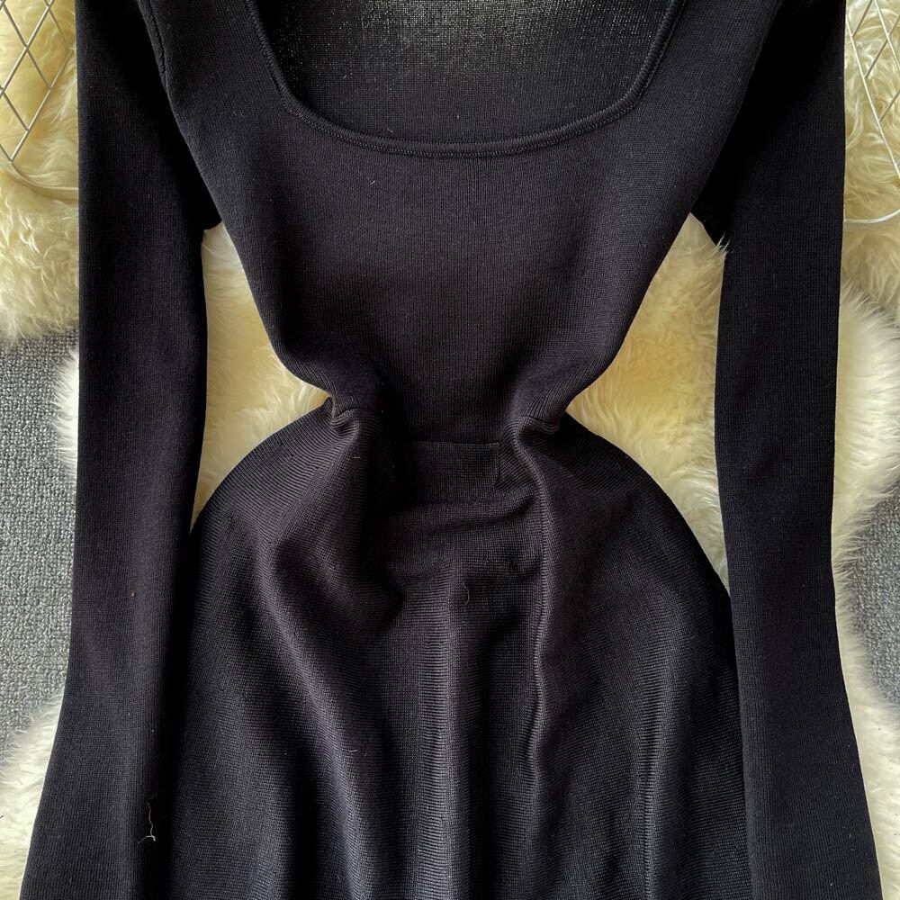 French Hepburn Red Dress Women's Mid-Length Slim Fit, Thin, Dignified, , Square Collar, Large Swing Long Skirt ロング レッド スカート スリム スクウェア lyxaj76964275397