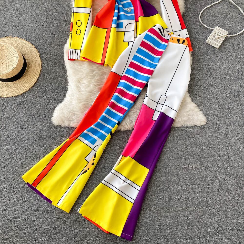 European and American ins fashion suit autumn and winter 2021 new retro printed suit jacket high waist flared pants two-piece set ハイウェスト レッド レトロ プリント オータム 秋物 ウィンター 冬物 ヨーロピアン lyxaj4553162082