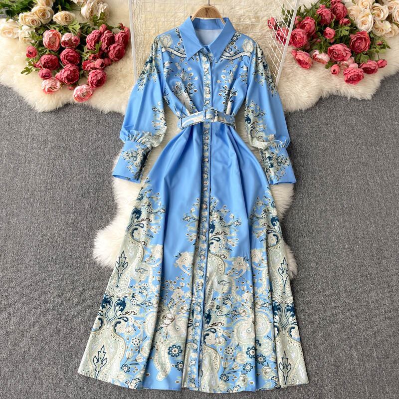 Palace style retro print dress long skirt women's 2021 new spring dress temperament breasted slim dress women ロング レトロ レース スプリング 春物 スカート スリム lyxaj37067766766