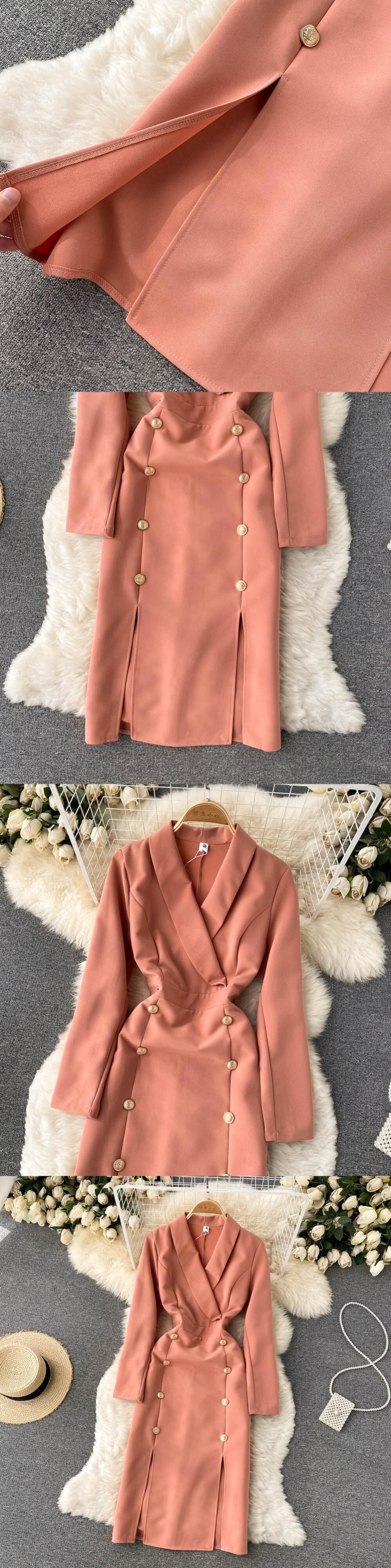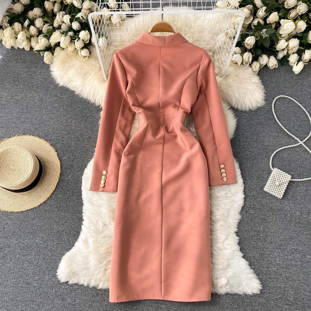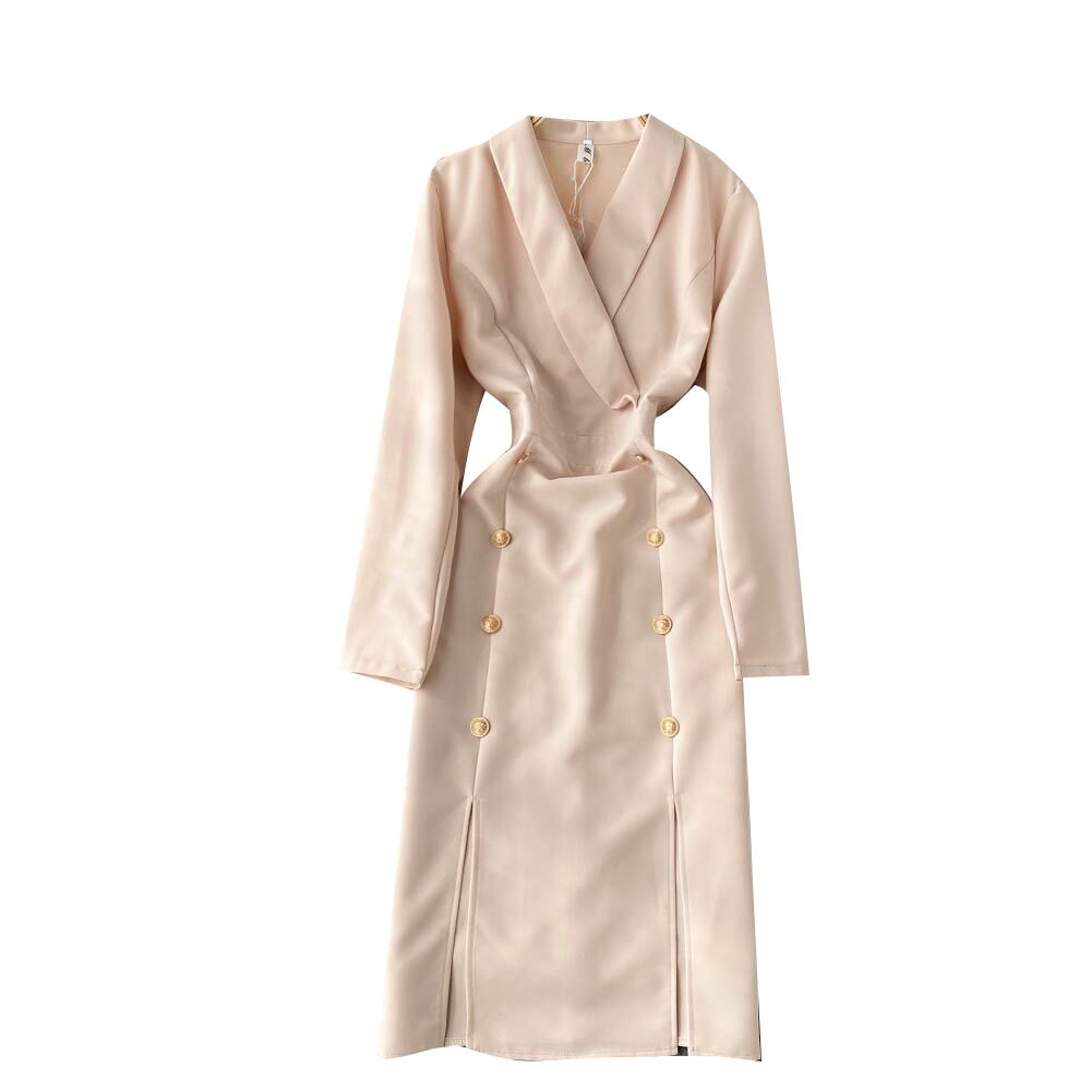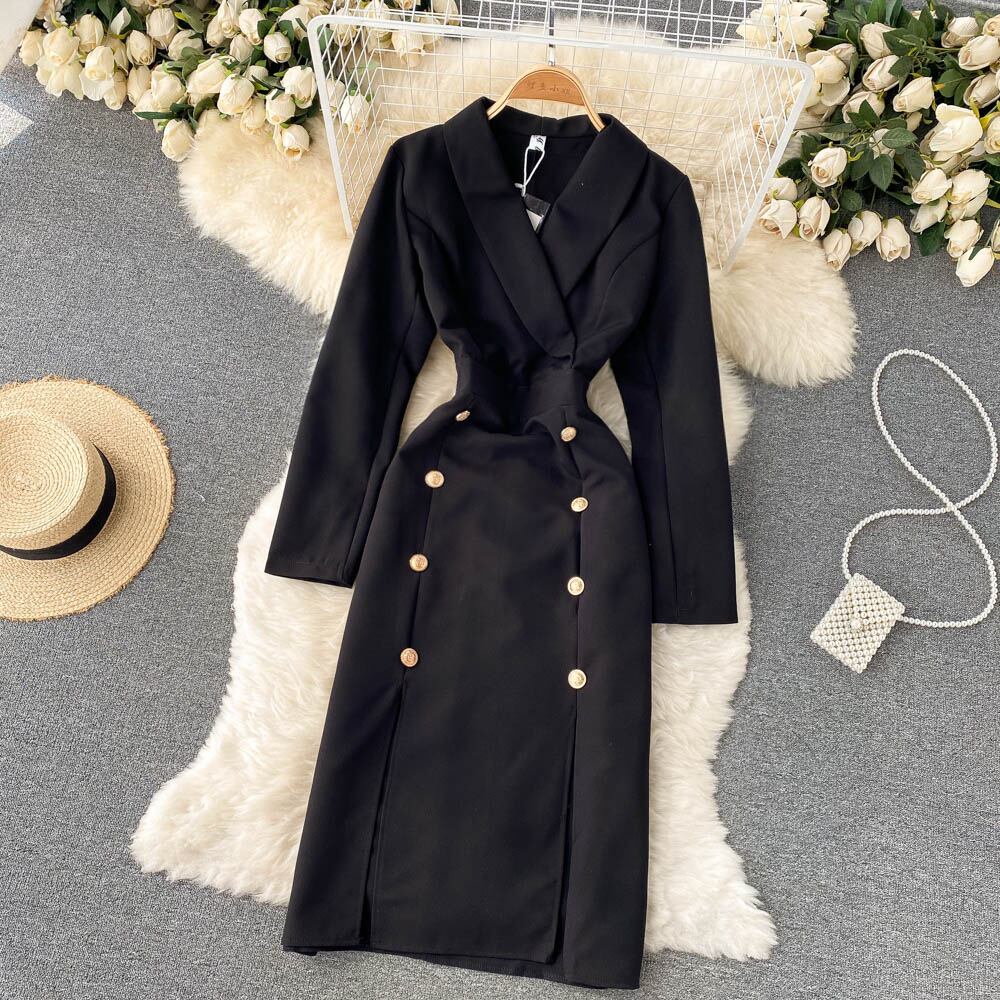 -end celebrity temperament suit-collar dress 2021 autumn and winter new waist and thin mid-length slit A-line skirt オータム 秋物 ウィンター 冬物 スカート Aライン lyxaj2345885419