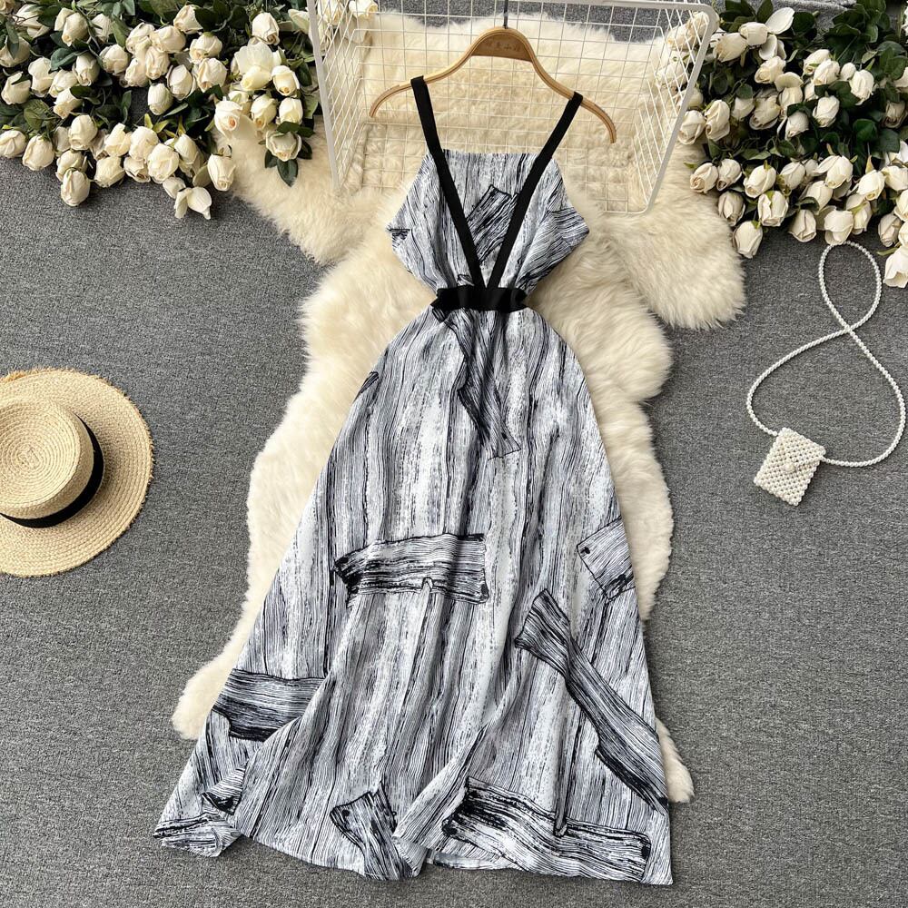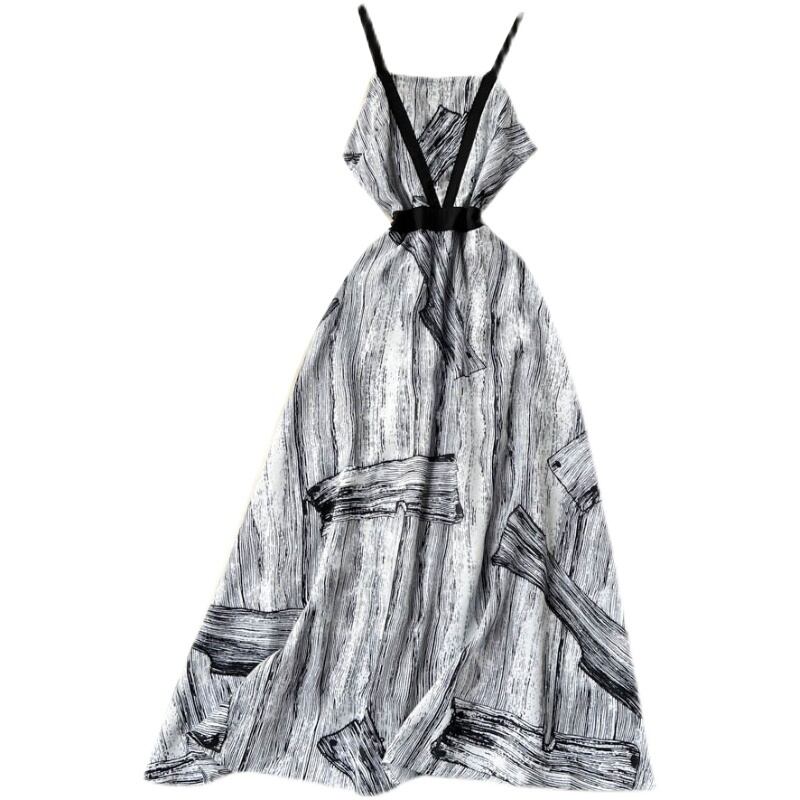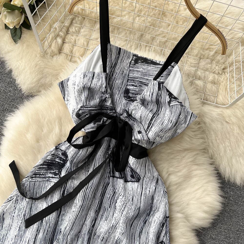 Beach skirt seaside holiday style dress female Sanya backless skirt suspender skirt super fairy thin chiffon knee-length skirt シフォン ビーチ スカート lyxaj72082396979