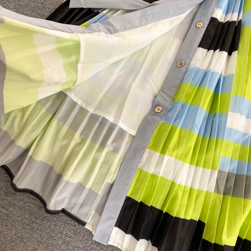 You a and sy women's clothing 2020 new summer design sense irregular color matching tie waist pleated long dress ロング プリーツ サマー 夏物 lyxaj7519953071