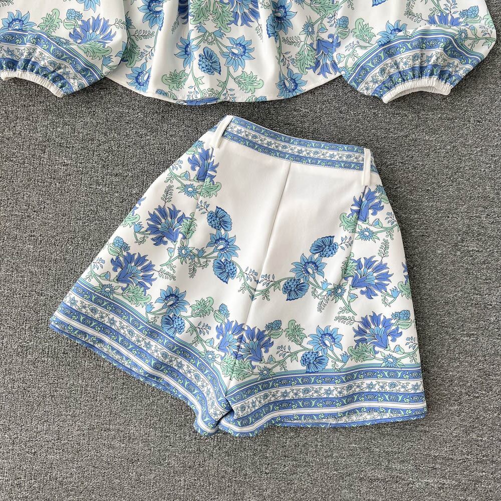 French retro printing fashion small shorts suit female 2022 spring and summer new style two-piece suit レトロ スプリング 春物 サマー 夏物 ショーツ ブルマー lyxaj65818616784