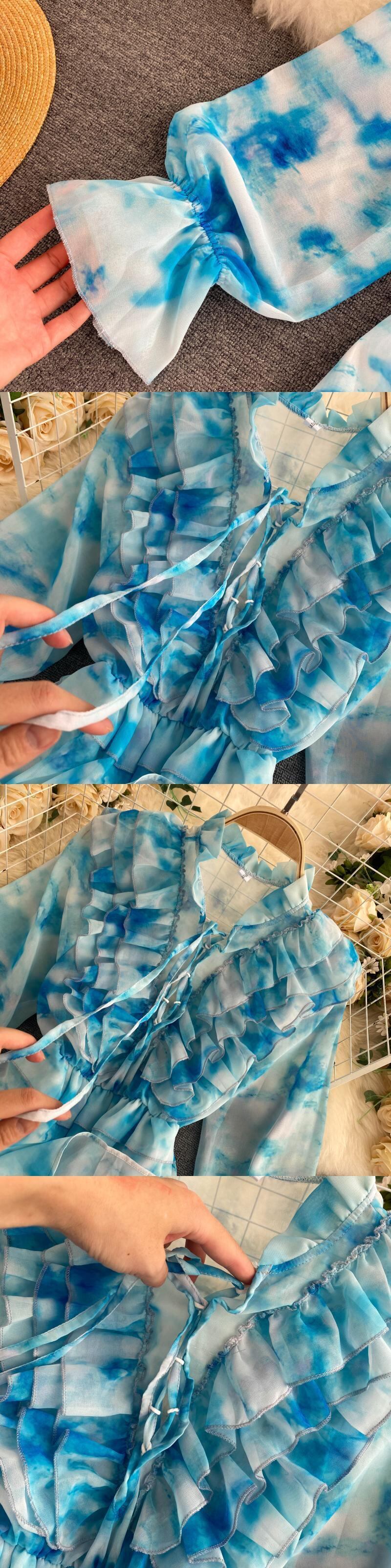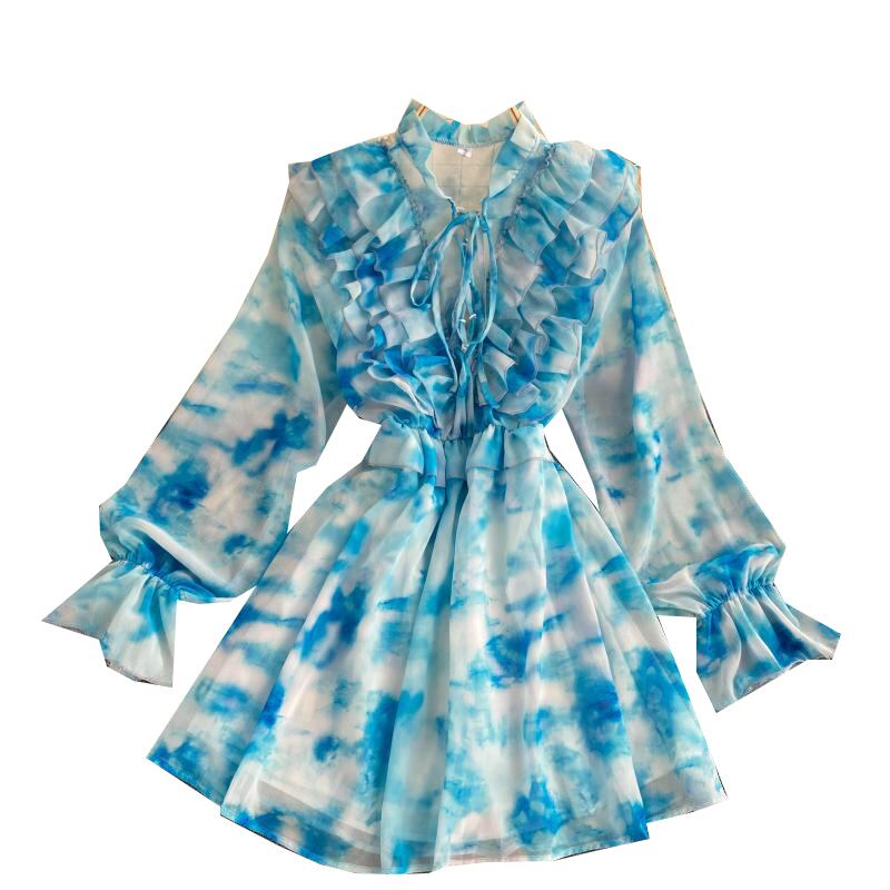 Irregular design sense tie-dye dress autumn 2020 new women's sweet fungus collar short chiffon skirt ショート シフォン 大人ガーリー スウィート キュート カジュアル オータム 秋物 スカート lyxaj9327043850
