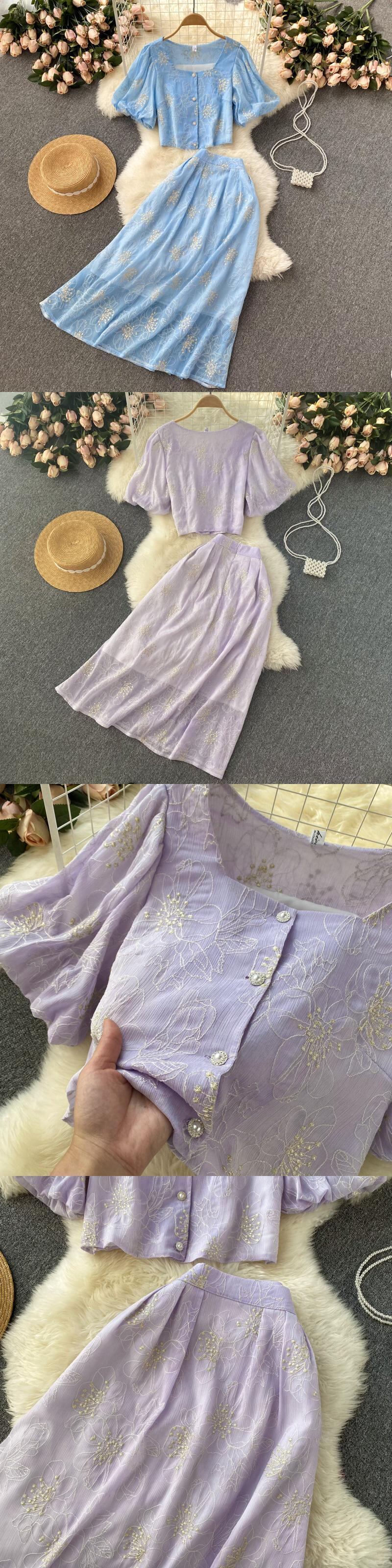 Small fresh women's suits 2022 new women's summer waist and thin temperament skirts short short-sleeved tops trendy ショート サマー 夏物 スカート lyxaj70332150411