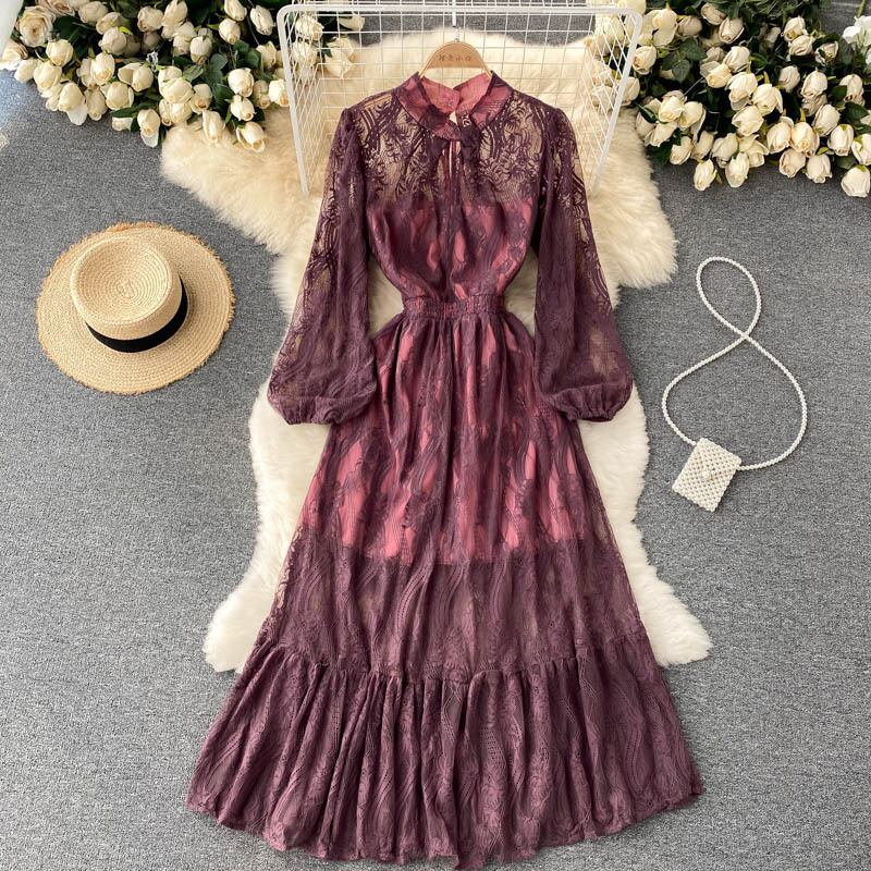 Lace dress women's early autumn new ladies elegant crocheted waist thin bottoming skirt large pleated skirt レース エレガント プリーツ オータム 秋物 スカート lyxaj97716040961