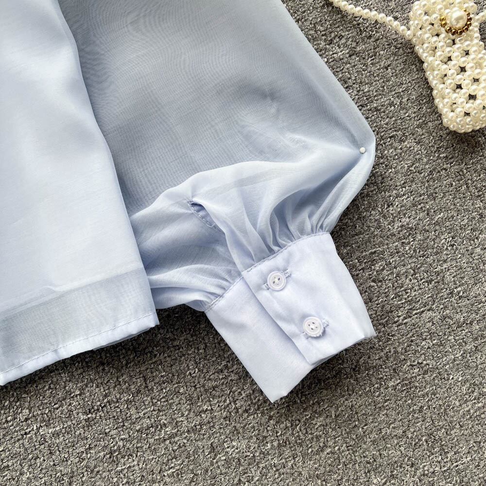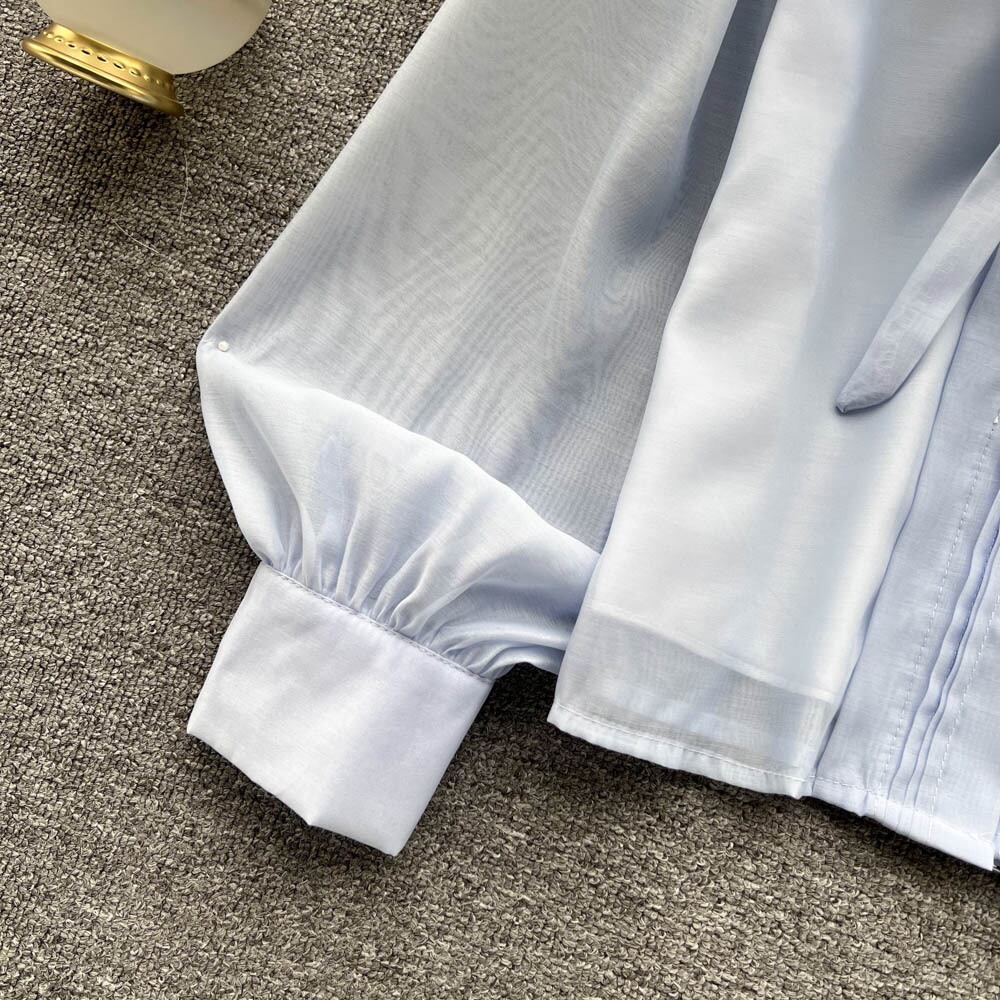 2022 early spring new doll collar design sense ruffled chiffon shirt design sense niche puff sleeve top trendy シフォン スプリング 春物 lyxaj37153398359