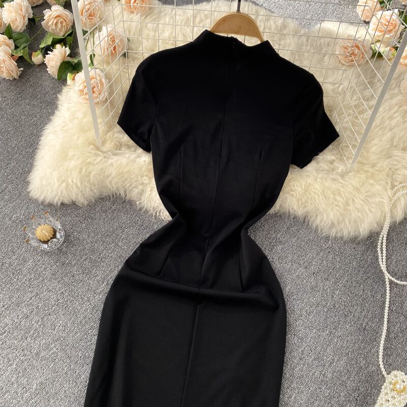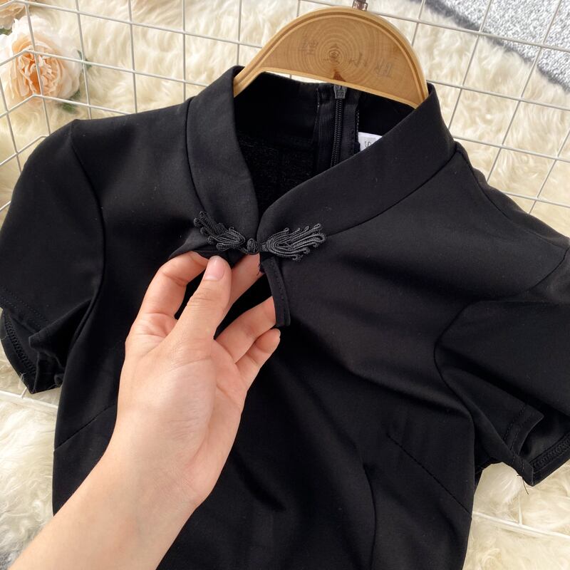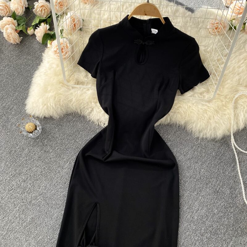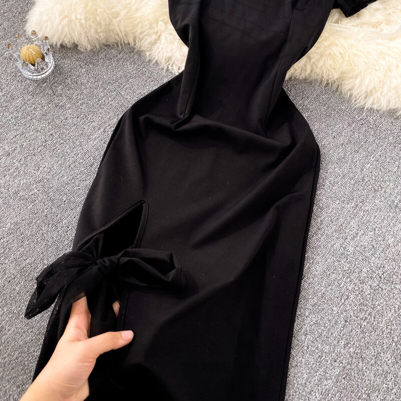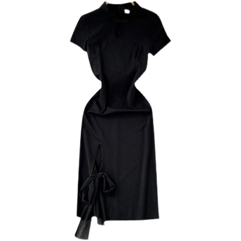Retro temperament design sexy split cheongsam high-quality bow straps slim fit Hepburn dress リボン レトロ スリム lyxaj82008383638