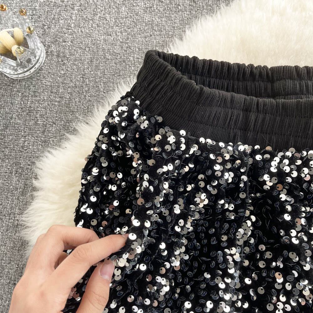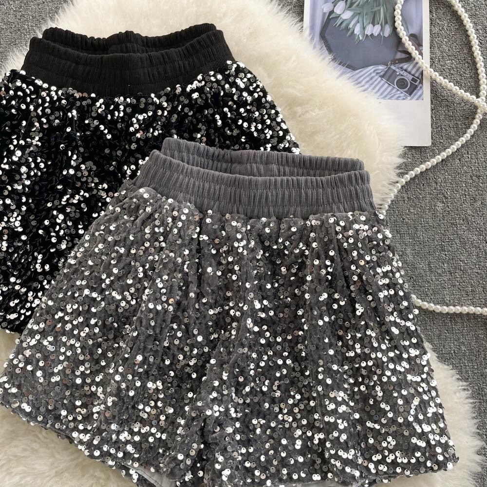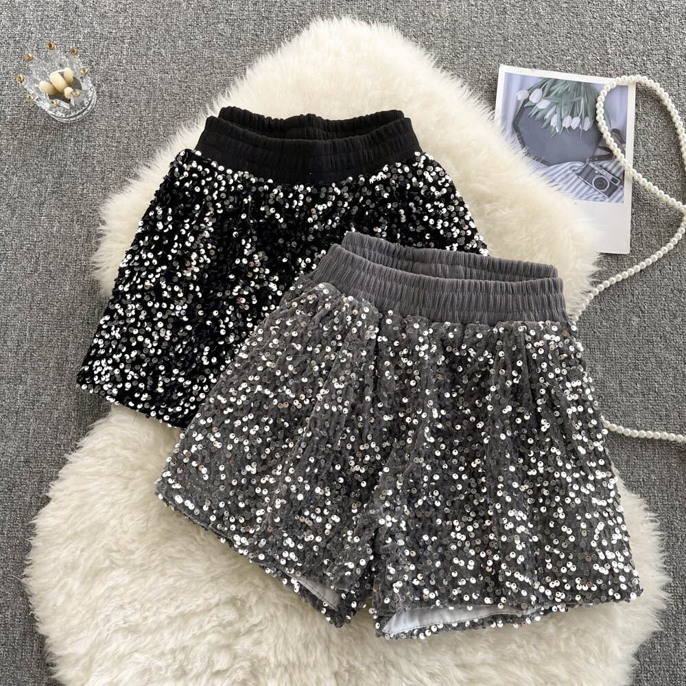 2022 spring new heavy industry sequin design sense niche high-waisted shorts women's waist is thin elastic waist pants エラスティック 伸縮 スプリング 春物 ショーツ ブルマー lyxaj6842967458
