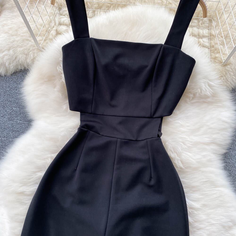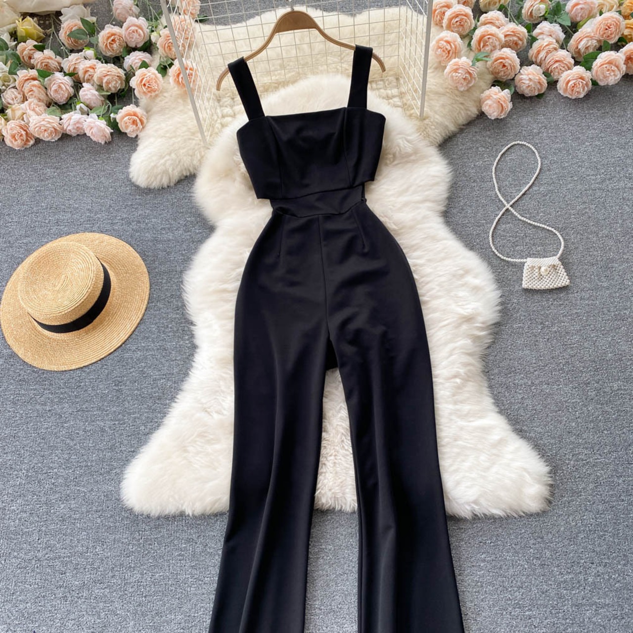 Yujie's light and familiar temperament square collar straps high-waisted jumpsuits scheming waist-length loose wide-leg workwear jumpsuit women スクウェア lyxaj1000305084
