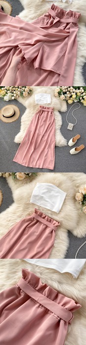 Holiday style suit 2020 new women's sexy tube top high waist slit skirt ins age-reducing two-piece trend ハイウェスト スカート lyxaj65601660878