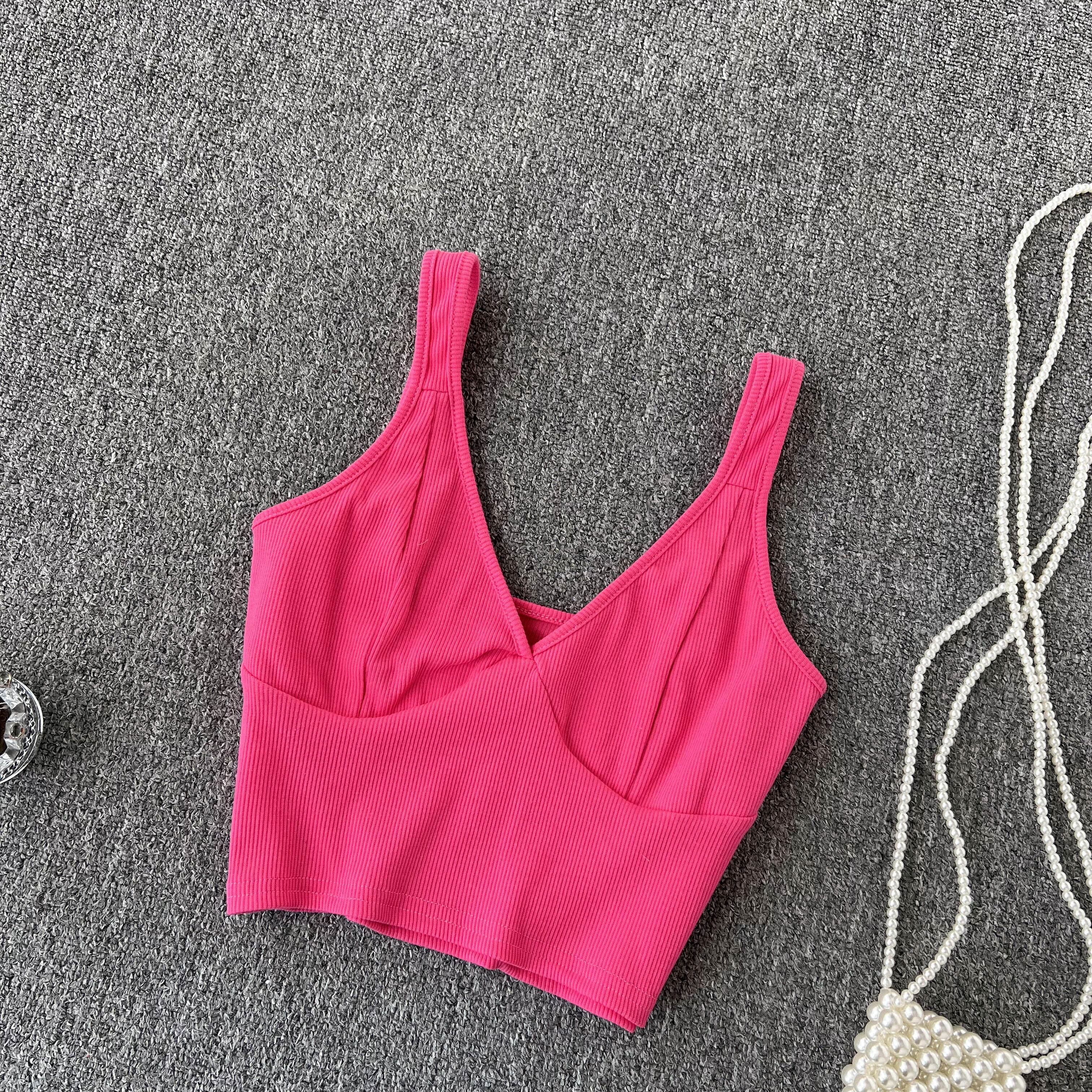 version of the fashion simple and versatile v-neck backless camisole short section bottoming shirt slim fit beautiful back top women ショート Vネック スリム lyxaj86175395748