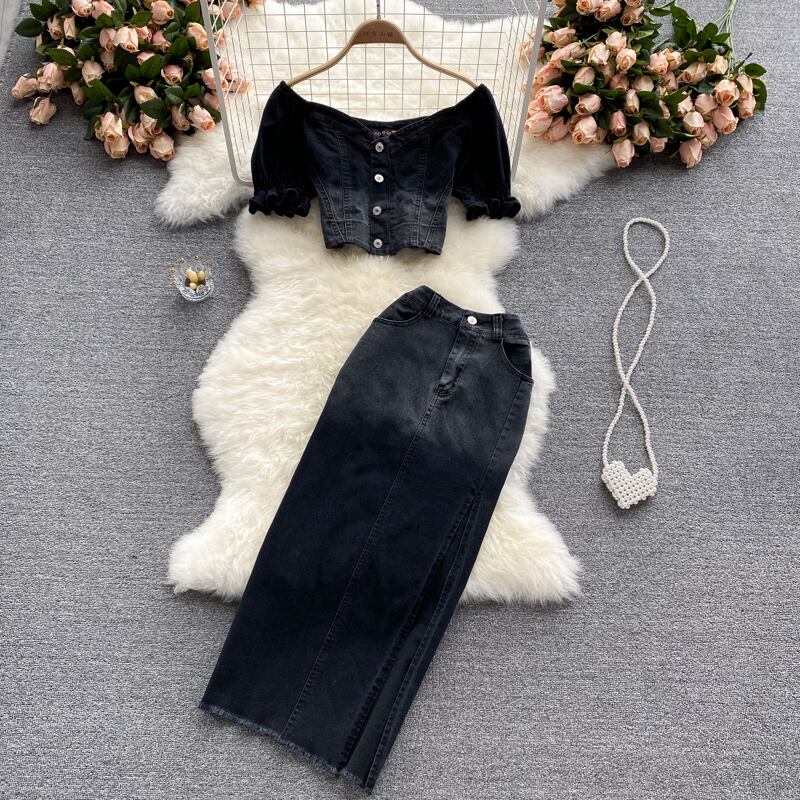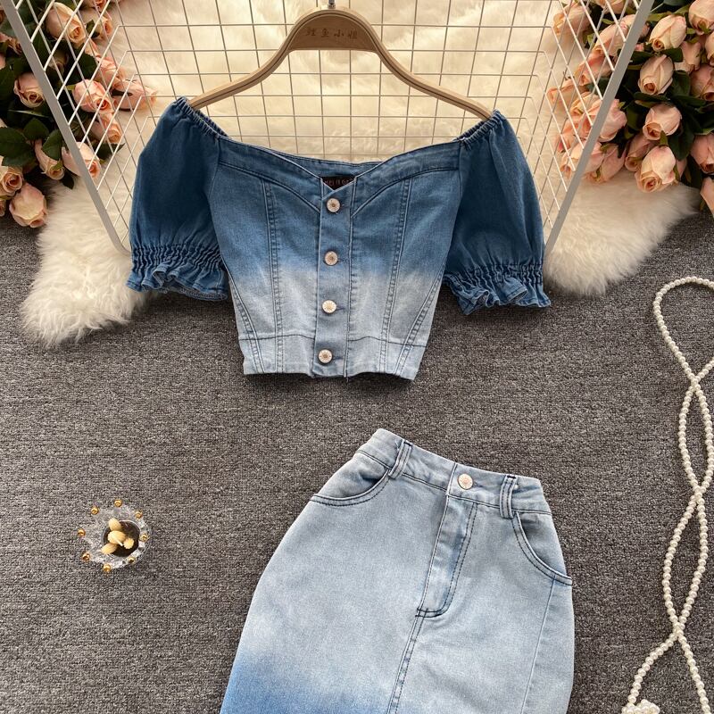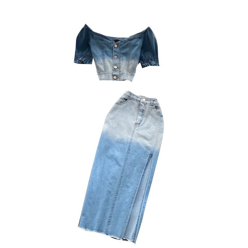 Net red fried street two-piece suit women's summer dress design gradient color short top all-match scheming slit skirt ショート レッド ストリート サマー 夏物 スカート lyxaj95015024269