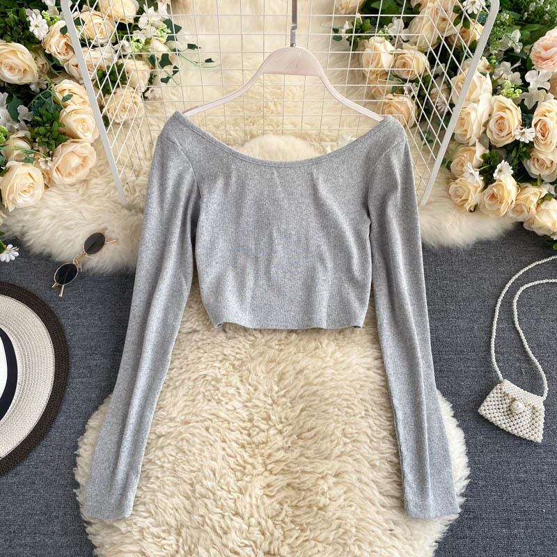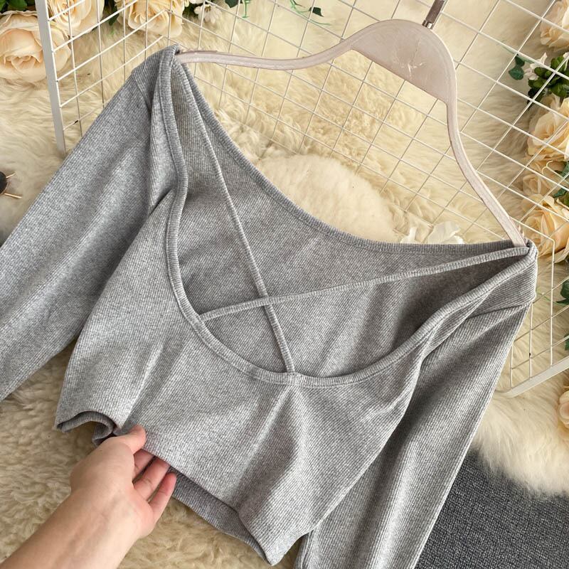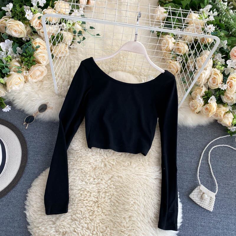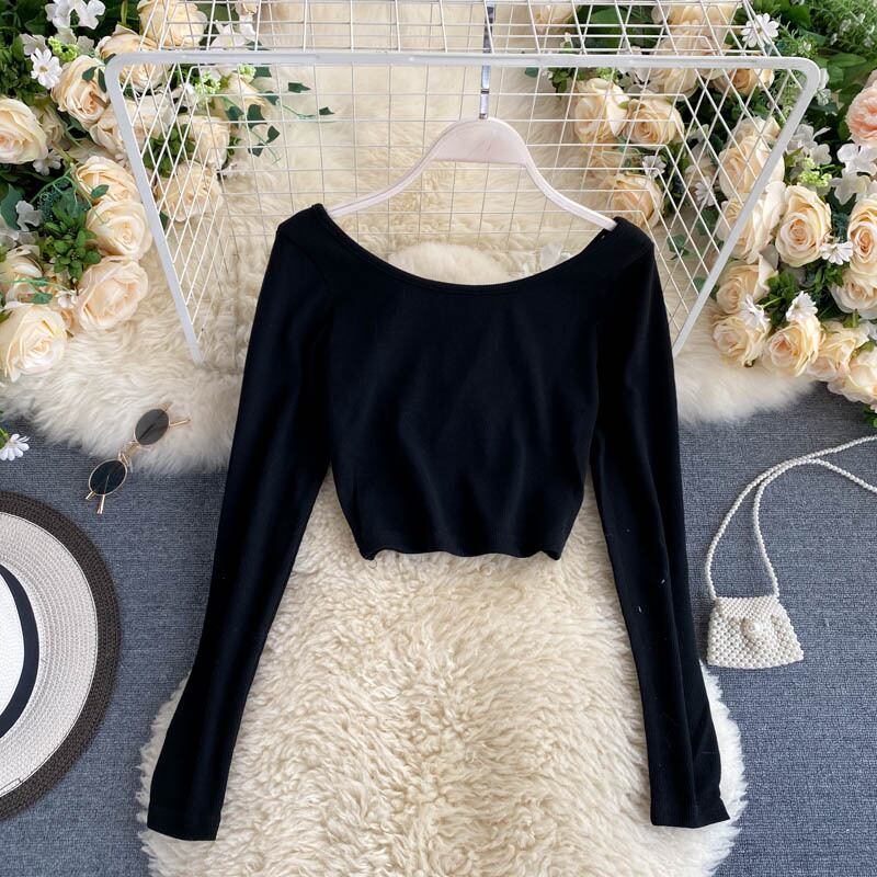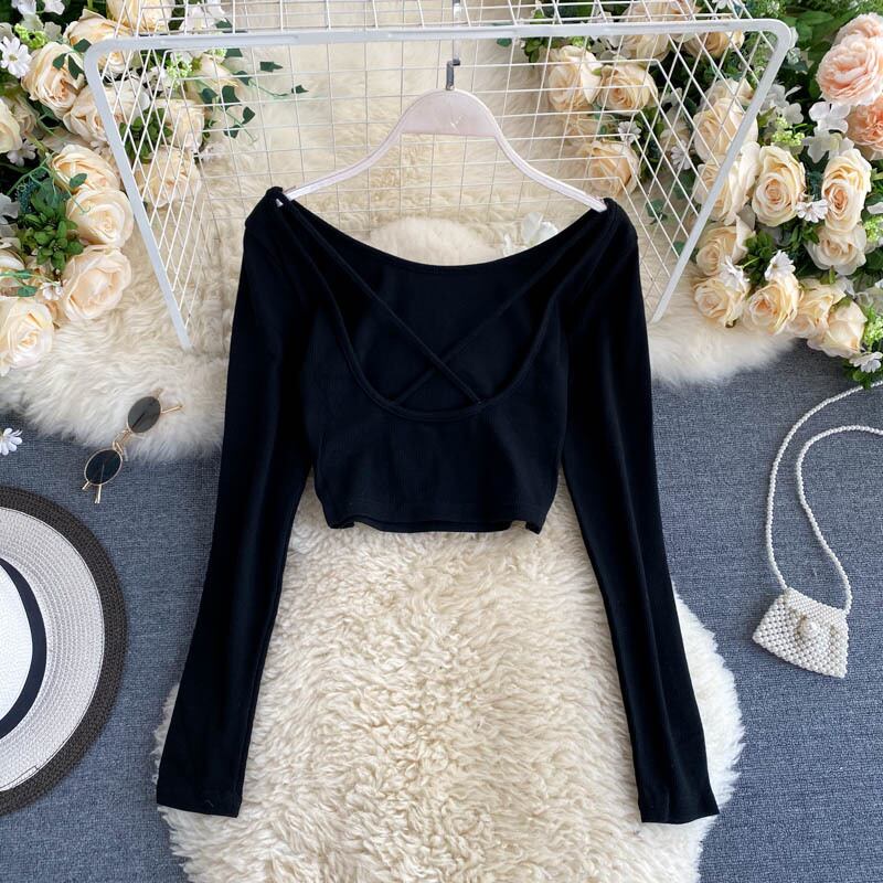 European and American ins design sense niche scheming backless sexy short top autumn 2020 new women's long-sleeved T-shirt ショート ロング オータム 秋物 Tシャツ ヨーロピアン lyxaj64700943637