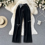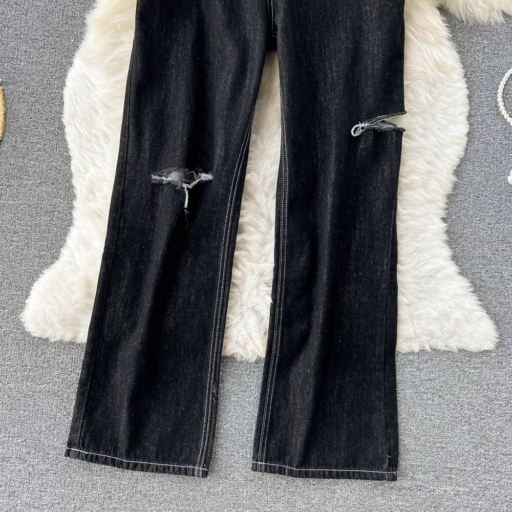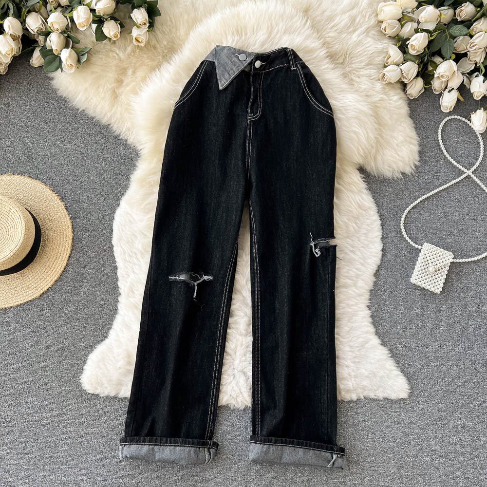 Retro street style irregular ripped jeans women's 2022 new version of the high waist loose straight wide leg pants ハイウェスト レトロ ストリート ワイドレッグ ワイドパンツ lyxaj80474760462