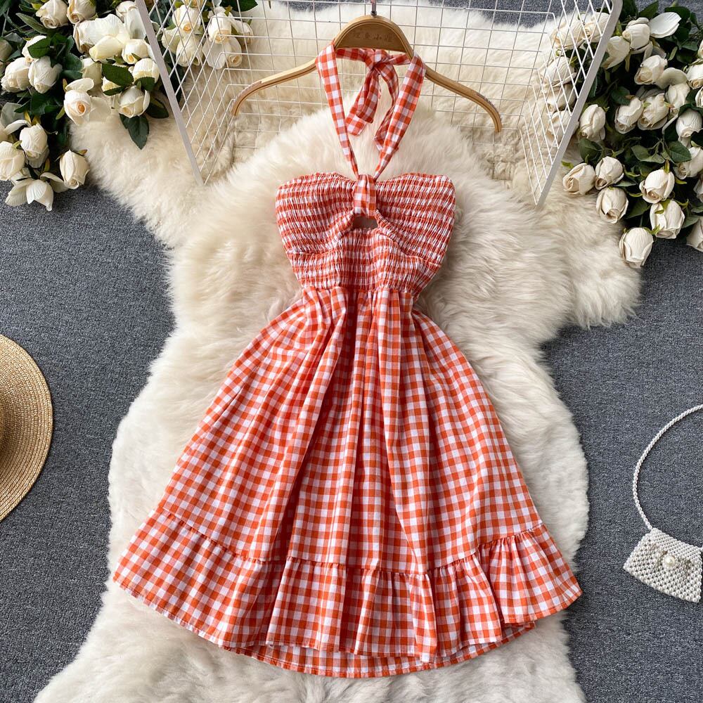 Europe and the United States 2022 early spring new self-cultivation and thin fashion all-match French plaid suspenders elastic dress short skirt women ショート エラスティック 伸縮 スプリング 春物 スカート lyxaj91765452741
